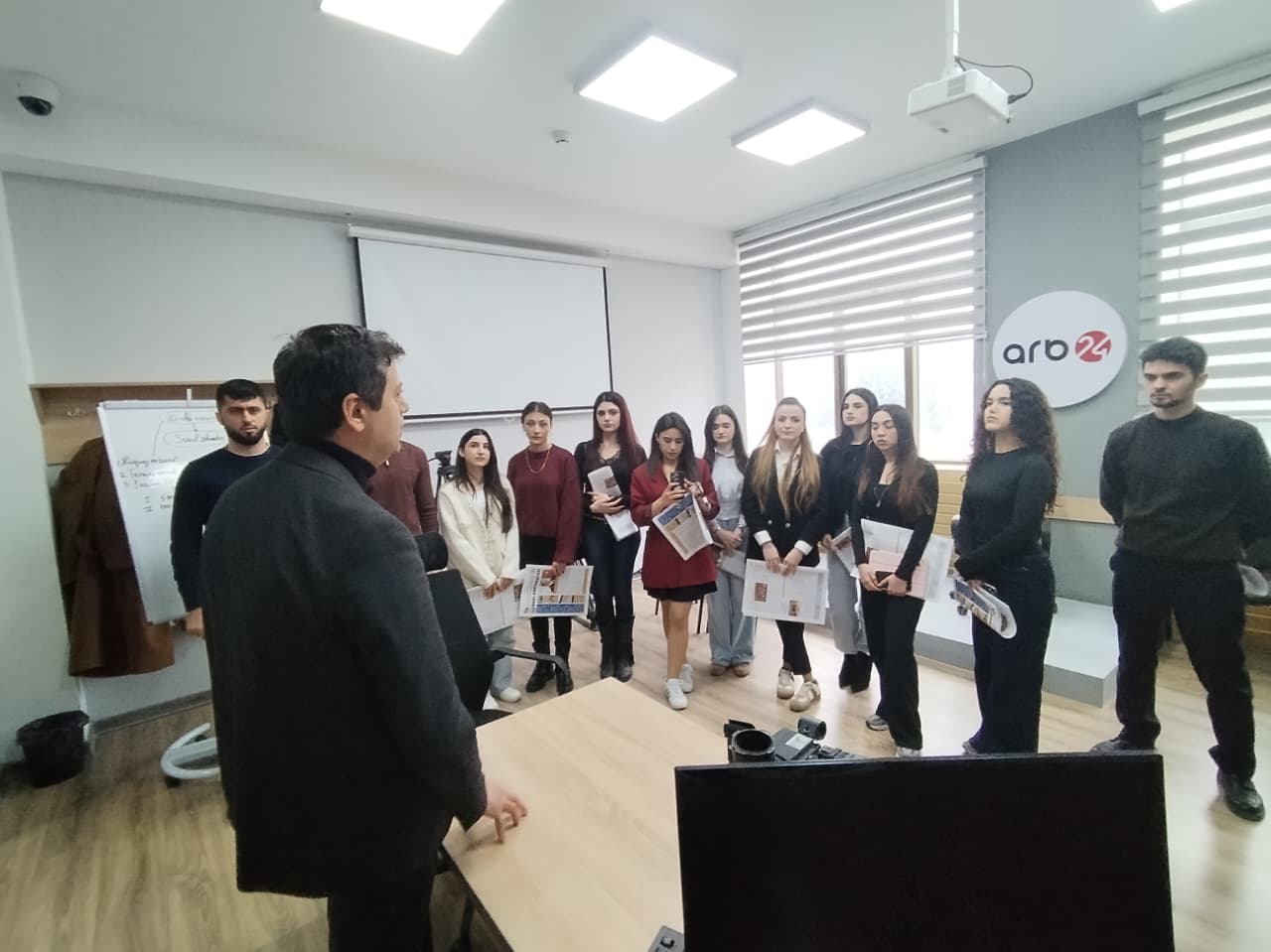 Jurnalistika fakültəsinin sosial məsələlər və tələbələrlə iş üzrə dekan müavini Samir Xalidoğlu tələbələri Jurnalistika fakültəsində yaradılan Azərbaycan Mətbuat Şurasının, Medianın İnkişafı Agentliyinin, AZƏRTAC-ın xüsusi auditoriyaları, “ARB24”ün “Newslab” təlim otağı, “Xalq qəzeti” debat otağı, “Füyuzat” Media mərkəzi və Milli mətbuat tarixi auditoriyası ilə tanış edib.