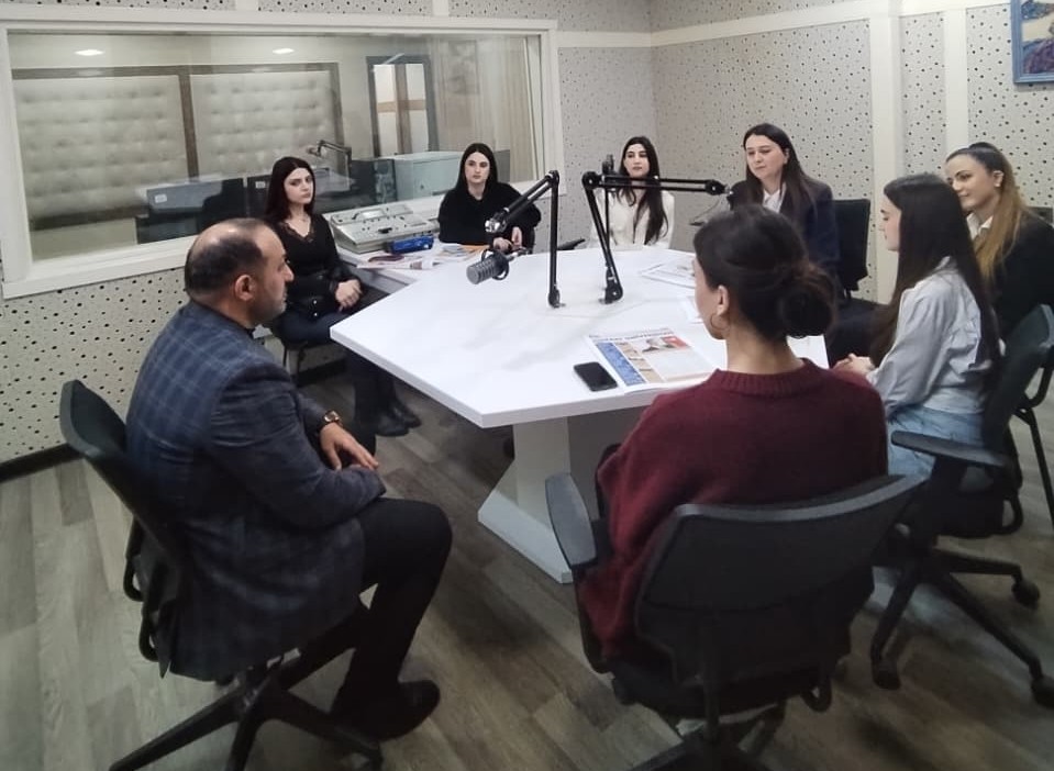 Daha sonra BDU-nun Tədris tele-radio studiyasının müdiri Ramin Rzayev tələbələrə studiyanın maddi-texniki bazası, tələbələrin burada həyata keçirdikləri praktik yayım və montaj proseslərində iştirakı haqqında ətraflı məlumat verib.