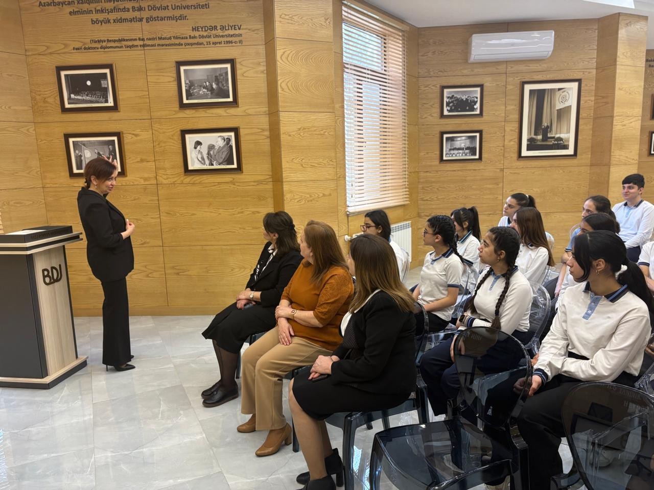 Şagirdlər BDU-nun Heydər Əliyev, Təkamül, Faydalı qazıntılar muzeyləri, həmçinin Universitetin unikal layihəsi olan “Eko Məkan” ilə yaxından tanış olublar.