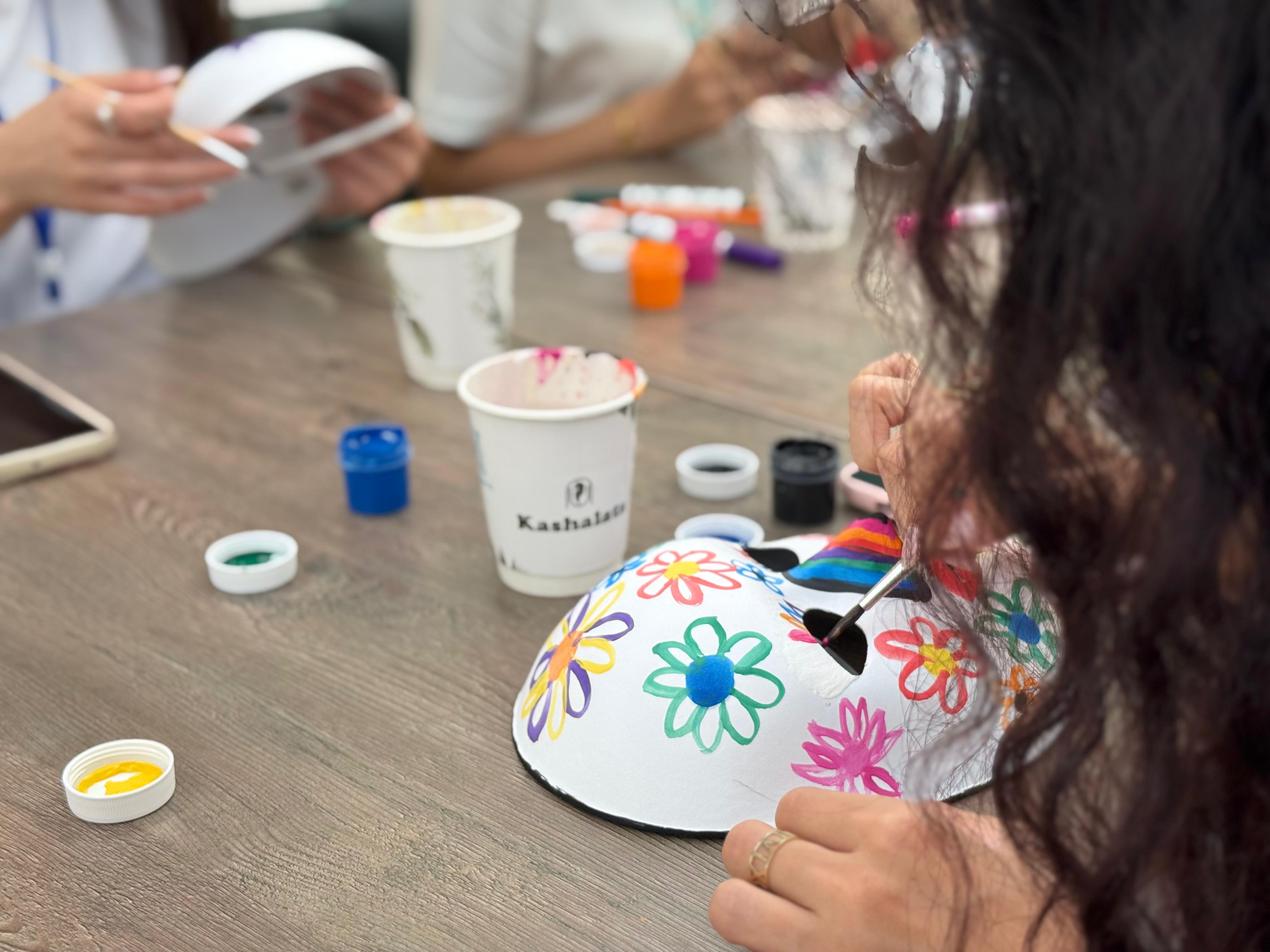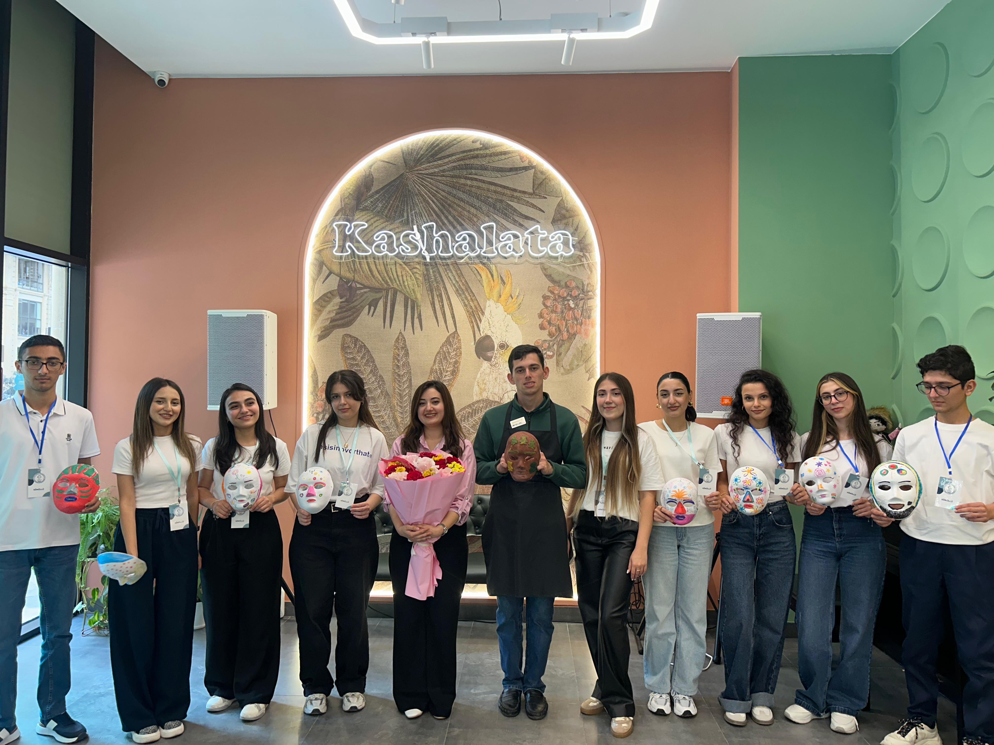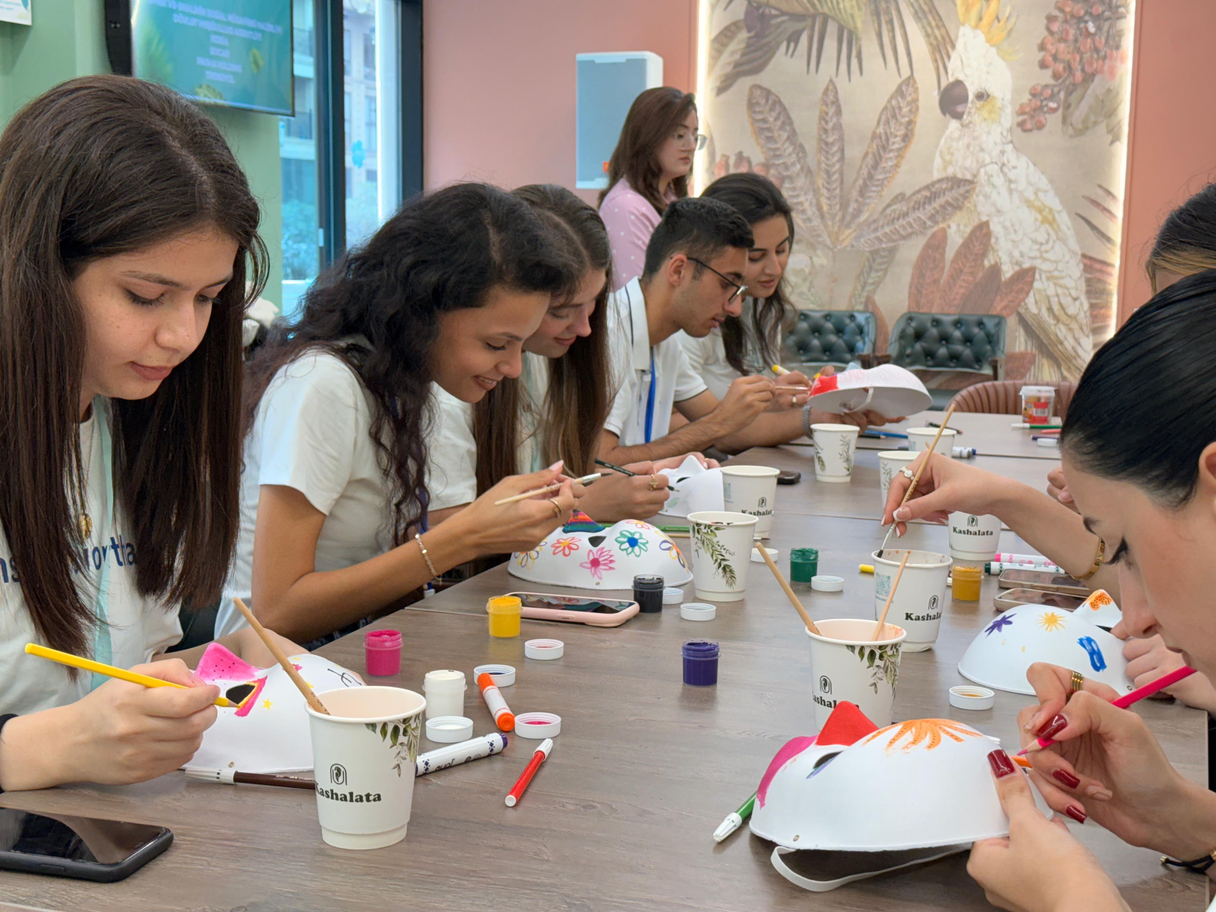 Tələbələrin özünüifadə bacarıqlarını gücləndirmək və emosional rahatlıq əldə etmələri üçün keçirilən təlimin praktik mərhələsində iştirakçılar ağ maskaların üzərində duyğu və təsəvvürlərini rənglərlə ifadə ediblər. Bu proses iştirakçılara öz emosiyalarını daha dərindən anlamaq və rənglər vasitəsilə paylaşmaq imkanı yaradıb.