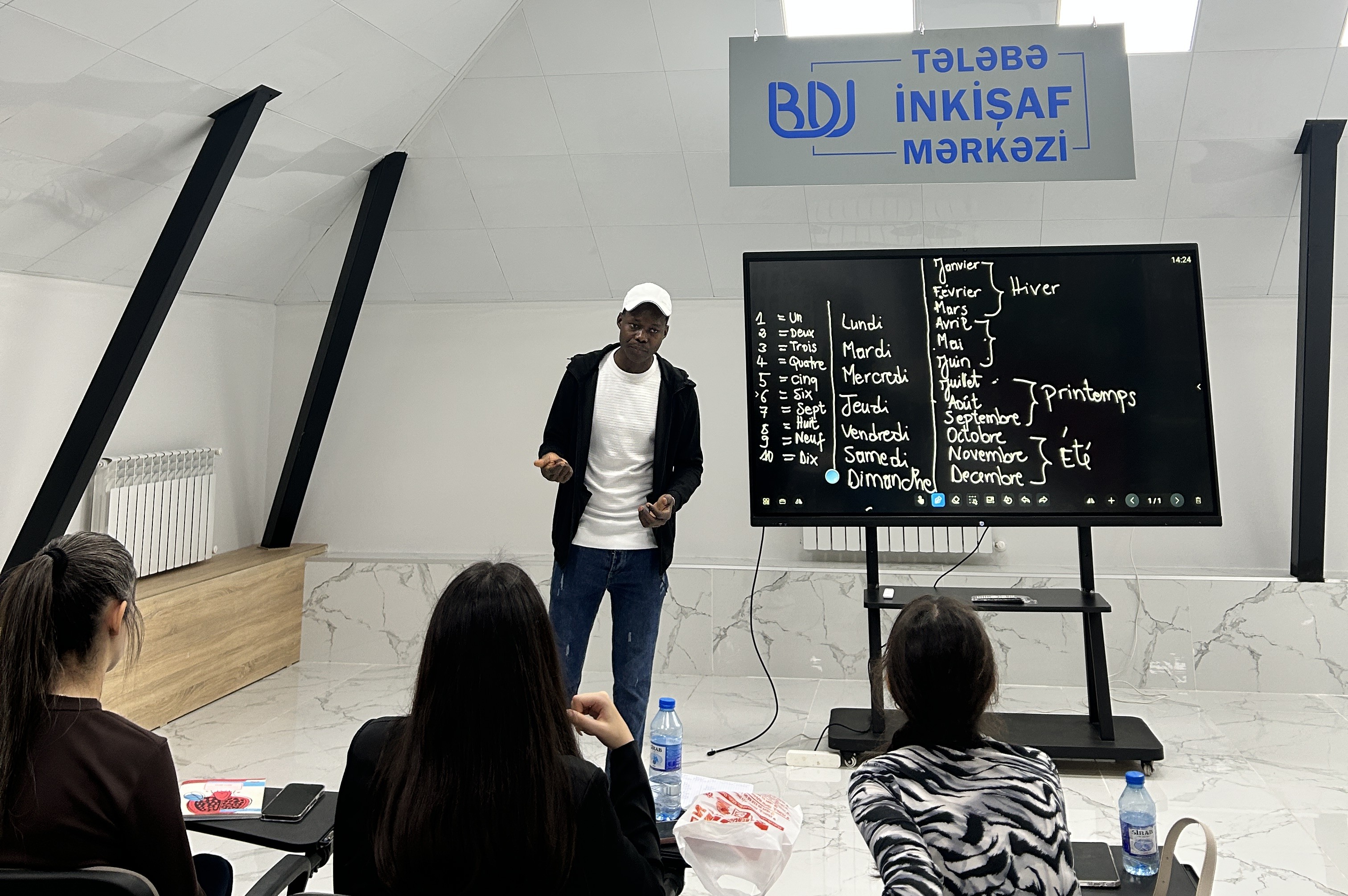 BDU-nun Tətbiqi riyaziyyat və kibernetika fakültəsinin tələbəsi Jean-Lucien Fouf-Kagna Grebayenin keçirdiyi təlimin məqsədi tələbələr arasında fransız dilinə marağı artırmaq, dil biliklərini inkişaf etdirməkdir.