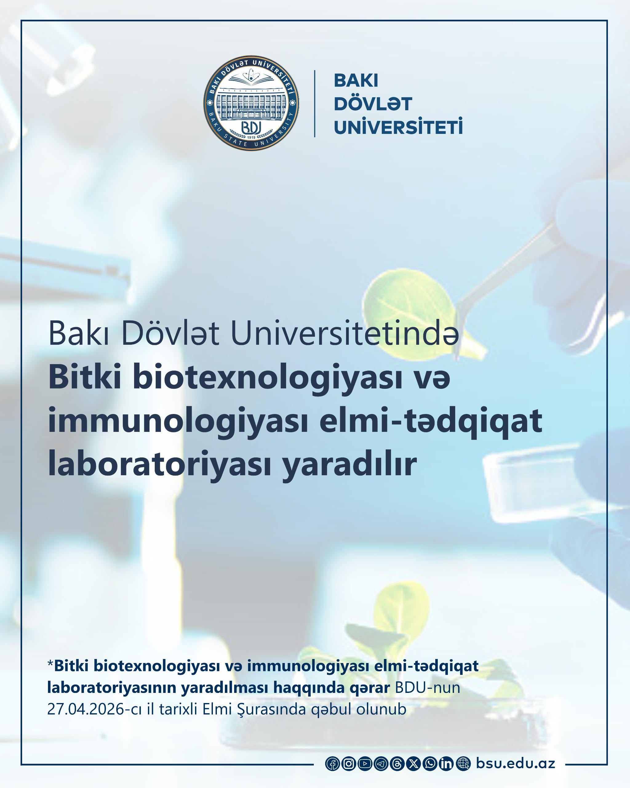 Bakı Dövlət Universitetində (BDU) Bitki biotexnologiyası və immunologiyası elmi-tədqiqat laboratoriyası yaradılır.