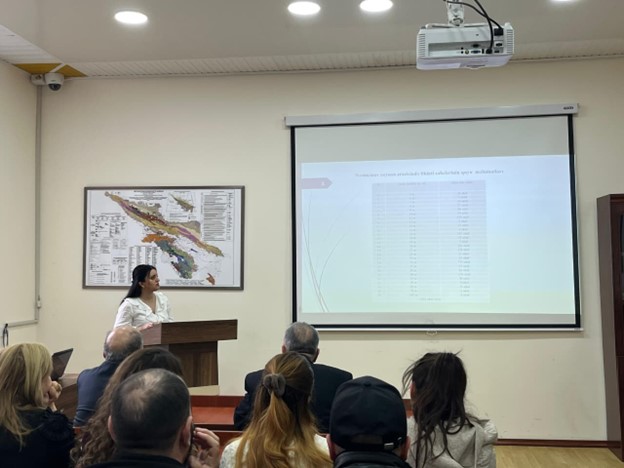 Məruzəçi, Seysmologiya və Yer təkinin fizikası kafedrasının qiyabi doktorantı İlhamə Cəlilova mövzu ilə bağlı məruzə edib. Məruzə kompleks çöl tədqiqatları, laborator analizlər və elmi ədəbiyyatın müqayisəli təhlili əsasında hazırlanıb.