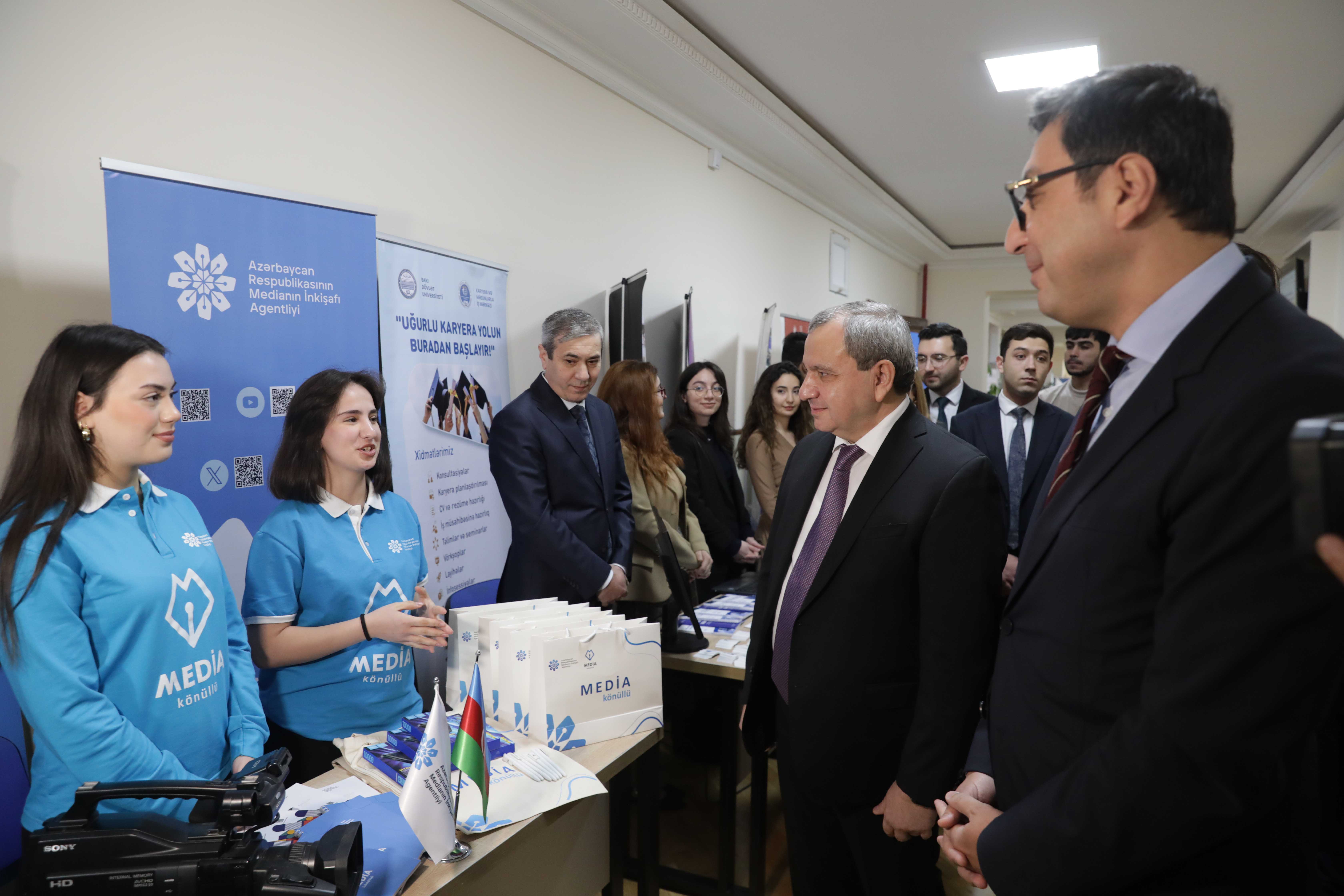 Rektor qeyd edib ki, BDU təkcə ölkəmizin ilk ali təhsil müəssisəsi deyil, Azərbaycan gəncliyinin formalaşmasında, intellektual və vətəndaş mövqeyinin yetişməsində aparıcı rol oynayan elm və düşüncə mərkəzi, dövlətimizin gənclər siyasətinin həyata keçirildiyi əsas platformalardan biridir. Universitet mühiti tələbələrin elmə, yaradıcılığa və ictimai həyata fəal qoşulması üçün geniş imkanlar yaradır. BDU-da fəaliyyət göstərən Tələbə Gənclər Təşkilatı, Tələbə Həmkarlar İttifaqı Komitəsi, “BDU könüllüləri” Təşkilatı, Tələbə Elmi Cəmiyyəti kimi tələbə təşkilatları, Tələbə Elmi-Texniki Yaradıcılıq Mərkəzi, mədəniyyət və idman mərkəzləri gənclərin potensialının üzə çıxarılmasında mühüm rol oynayır. BDU tələbələri ölkəmizdə keçirilən beynəlxalq tədbirlərdə, sosial layihələrdə və könüllülük fəaliyyətində xüsusi fəallıqları ilə seçilirlər. Bu gün ölkəmizin ən aparıcı könüllü təşkilatlarının üzvlərinin böyük əksəriyyəti BDU tələbələridir. “BDU könüllüləri” təşkilatı ölkənin ən dinamik və fəal könüllü təşkilatlarından biridir.