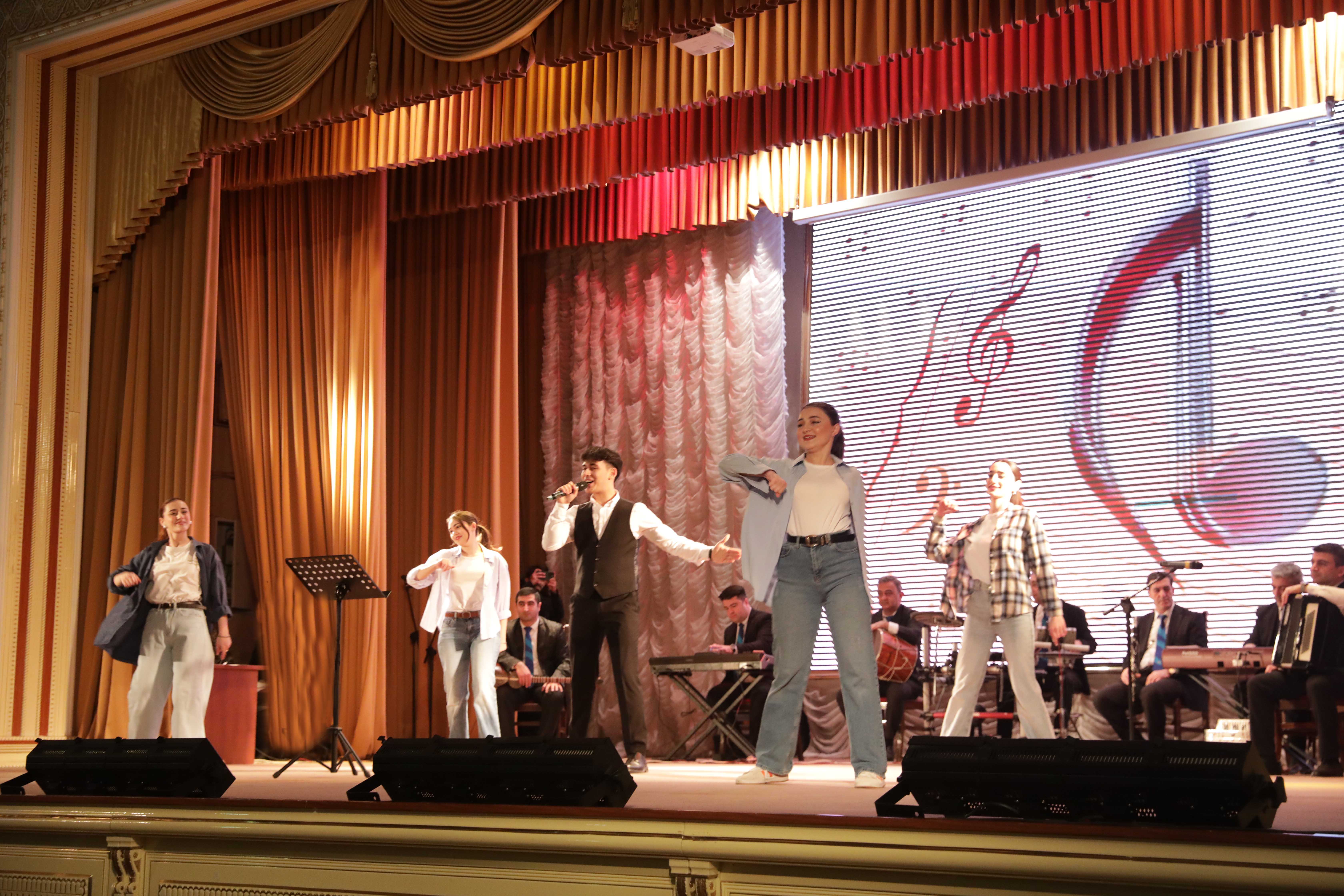 BDU-nun Mədəniyyət-Yaradıcılıq Mərkəzinin Azərbaycan Gəncləri Günü münasibətilə hazırladığı bədii kompozisiya nümayiş olunub.