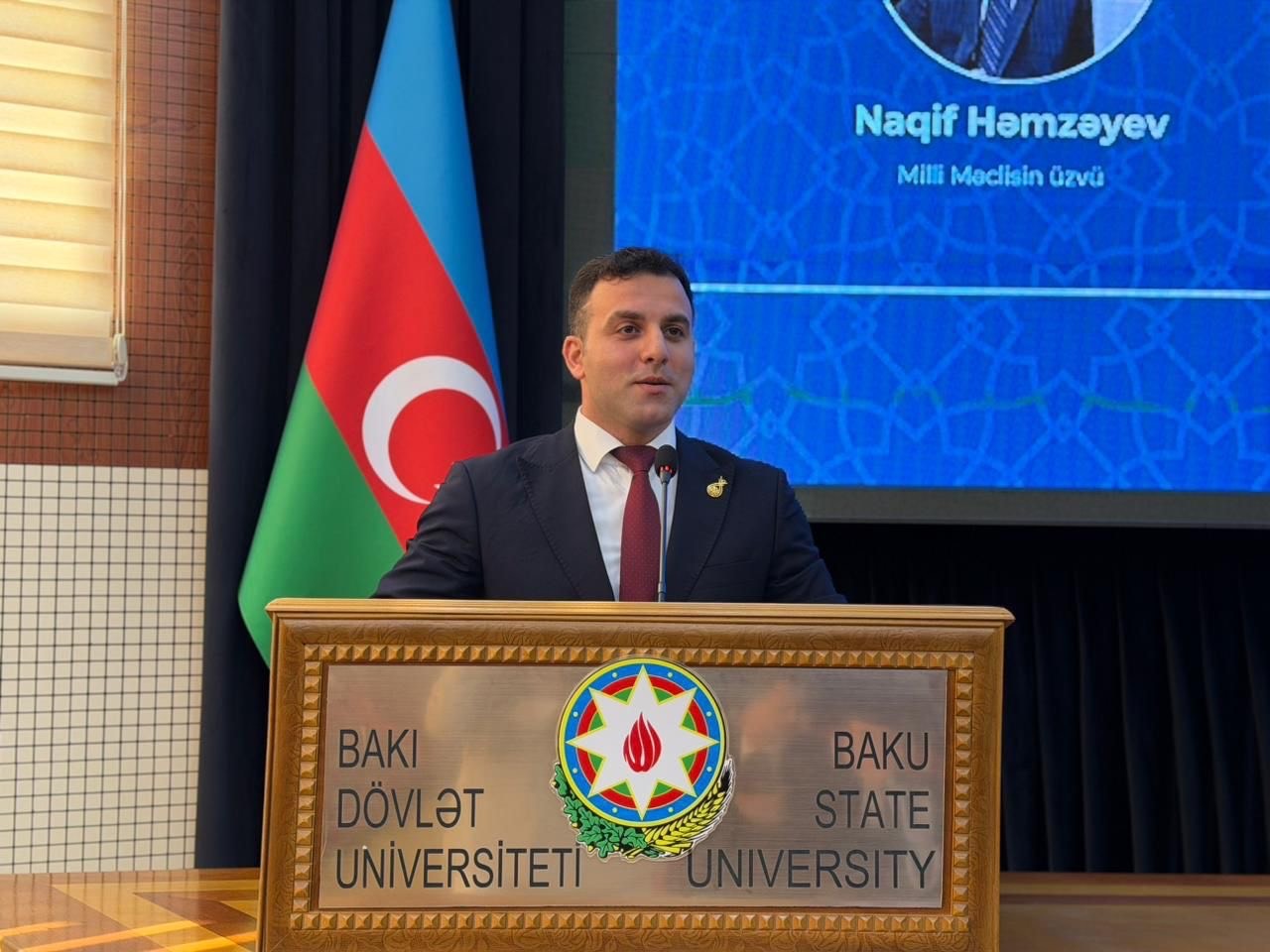 Milli Məclisin üzvü, BDU-nun Mənbəşünaslıq, tarixşünaslıq və metodika kafedrasının müəllimi Naqif Həmzəyev dövlət idarəçiliyində gənclərin iştirakının institusional əsaslarından söz açıb, bunun gənclər siyasətinin milli inkişaf strategiyasının mühüm tərkib hissəsi olduğunu bildirib. O, qanunvericilik müstəvisində gənclərin hüquq və imkanlarının genişləndirilməsinin dövlətin prioritet istiqamətlərindən biri olduğunu deyib.