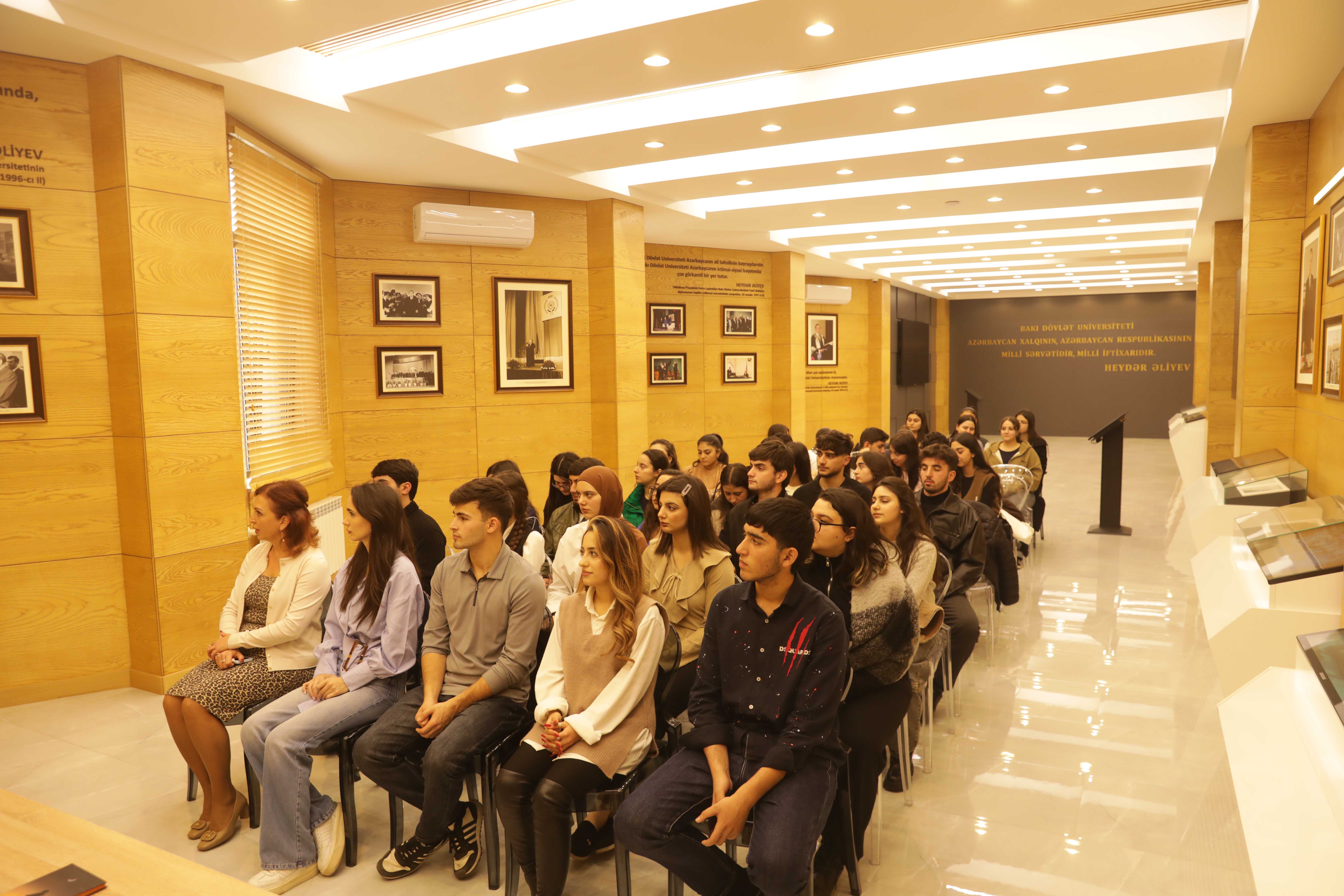 Bakı Dövlət Universitetinin (BDU) Heydər Əliyev muzeyinin təşkilatçılığı ilə “Heydər Əliyev və gənclər siyasəti” mövzusunda görüş keçirilib.