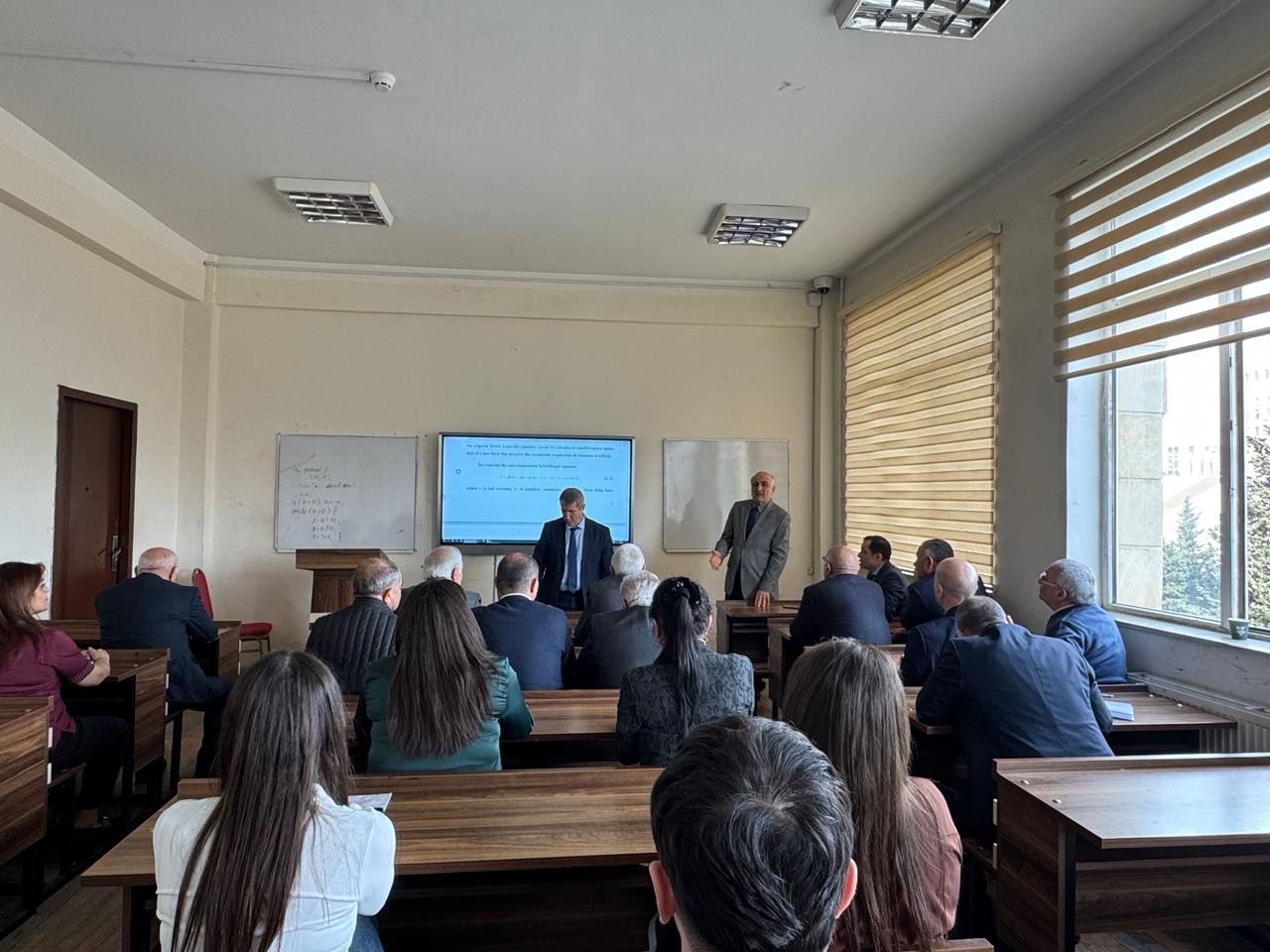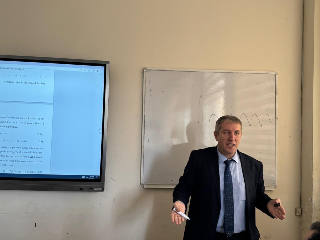 Seminarda BDU-nun Tətbiqi riyaziyyat kafedrasının professoru Aqil Xanməmmədov məruzə ilə çıxış edib. Təqdimat zamanı Qursa məsələsinin həllinin mövcudluğu və yeganəliyi əsaslandırılıb, deltavari potensiallı Şredinger tənliyi üçün nöqtədə şərti ödəyən çevirmə operatoru qurulub.