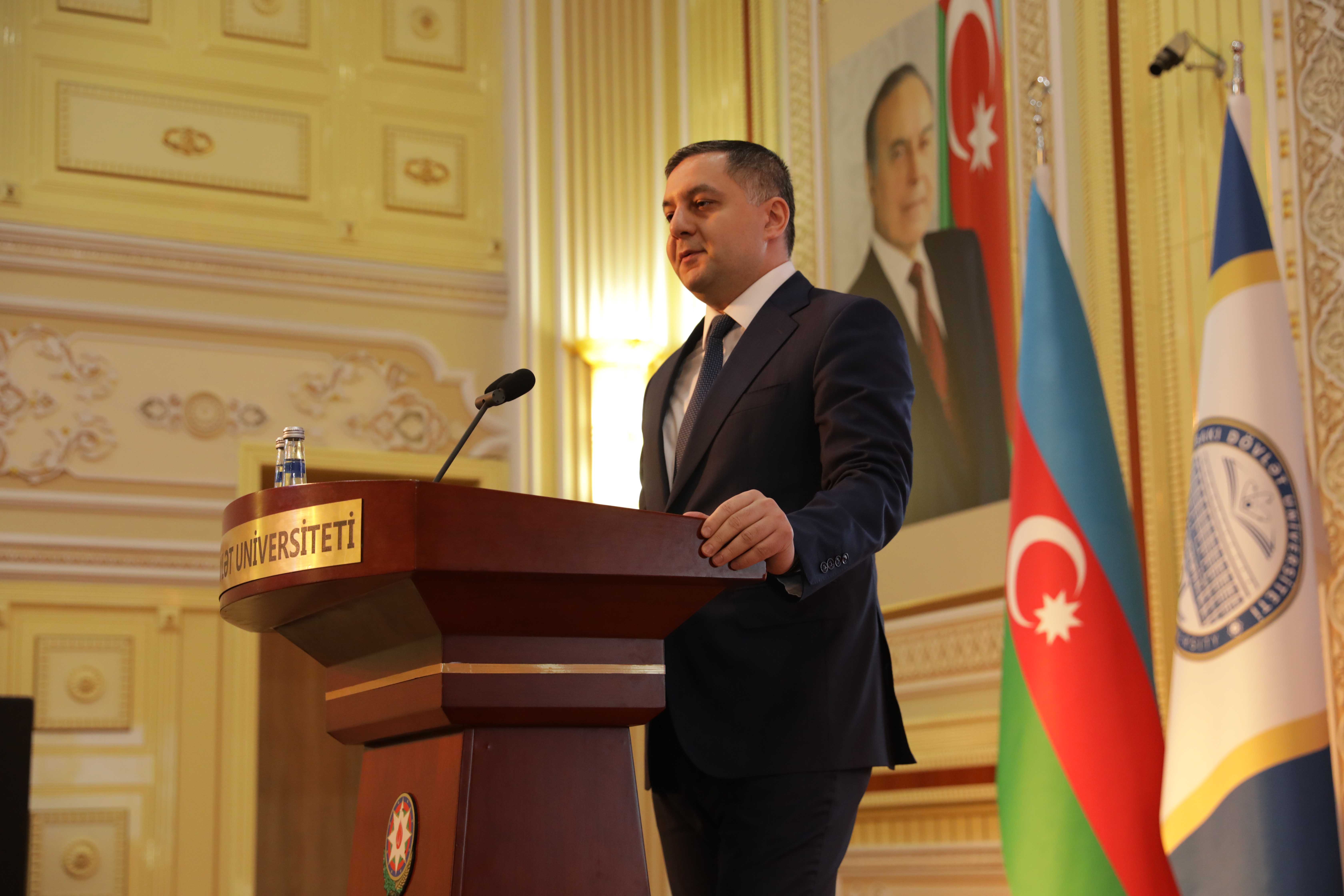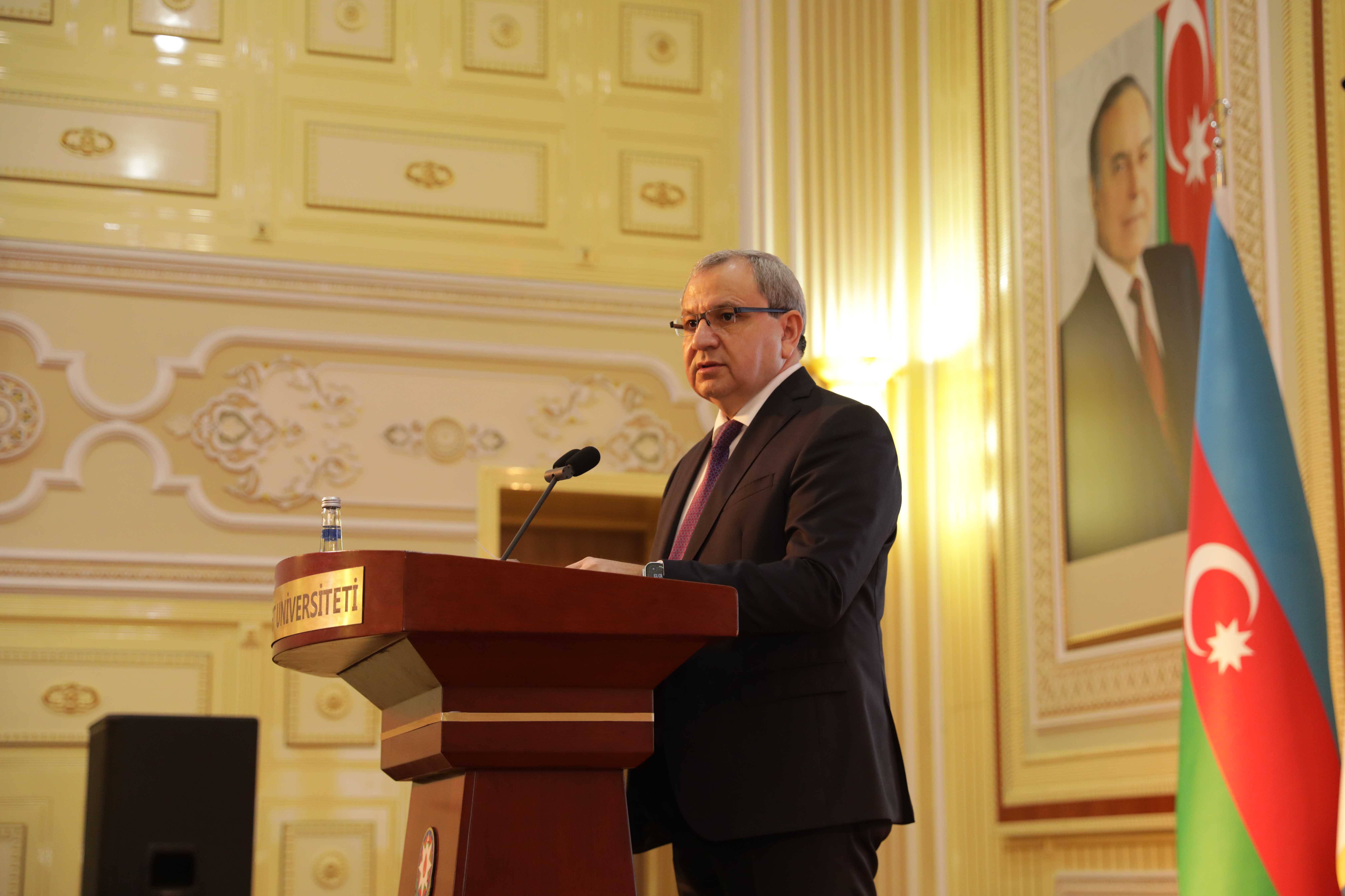 Rektor diqqətə çatdırıb ki, Ulu Öndər Heydər Əliyevin dövlətçilik fəlsəfəsi və onun hazırladığı konstitusion model Azərbaycan dövlətinin siyasi sabitliyinin, hüquqi sisteminin və idarəetmə strukturunun təməlini təşkil edir. Bu gün həmin xətt Prezident İlham Əliyev tərəfindən müasir dövrün çağırışlarına uyğun şəkildə daha da inkişaf etdirilir. Dövlət idarəçiliyində institusional modernizasiya, hüquqi islahatlar, insan hüquqlarının müdafiəsi və milli maraqlara əsaslanan suveren siyasət bu prosesin davamıdır. Bakı Dövlət Universitetinin bu istiqamətdə rolu da xüsusi qeyd olunmalıdır: “Universitet minlərlə hüquqşünasın, dövlət xadiminin, diplomatın, tarixçinin, iqtisadçının və digər sahələr üzrə tədqiqatçıların yetişdiyi məktəbdir. Burada aparılan elmi araşdırmalar, konstitusiya hüququ üzrə təhlillər, dövlət suverenliyinə dair multidissiplinar layihələr ölkənin elmi-intellektual potensialına mühüm töhfə verir. Konstitusiya və suverenlik kimi mürəkkəb, fundamental və strateji anlayışların müzakirə edildiyi belə tədbirlər məhz gənclərin dünyagörüşünü genişləndirməyə, elmi təfəkkürünü dərinləşdirməyə xidmət edir. Azərbaycan Respublikasının Konstitusiyası dövlətçiliyimizin “yol xəritəsi”, suverenliyimizin hüquqi çərçivəsidir. Bugünkü konfrans bu sənədin mahiyyətini daha dərindən anlamağa, onu elmi və praktik prizmadan yenidən qiymətləndirməyə imkan verəcək”.