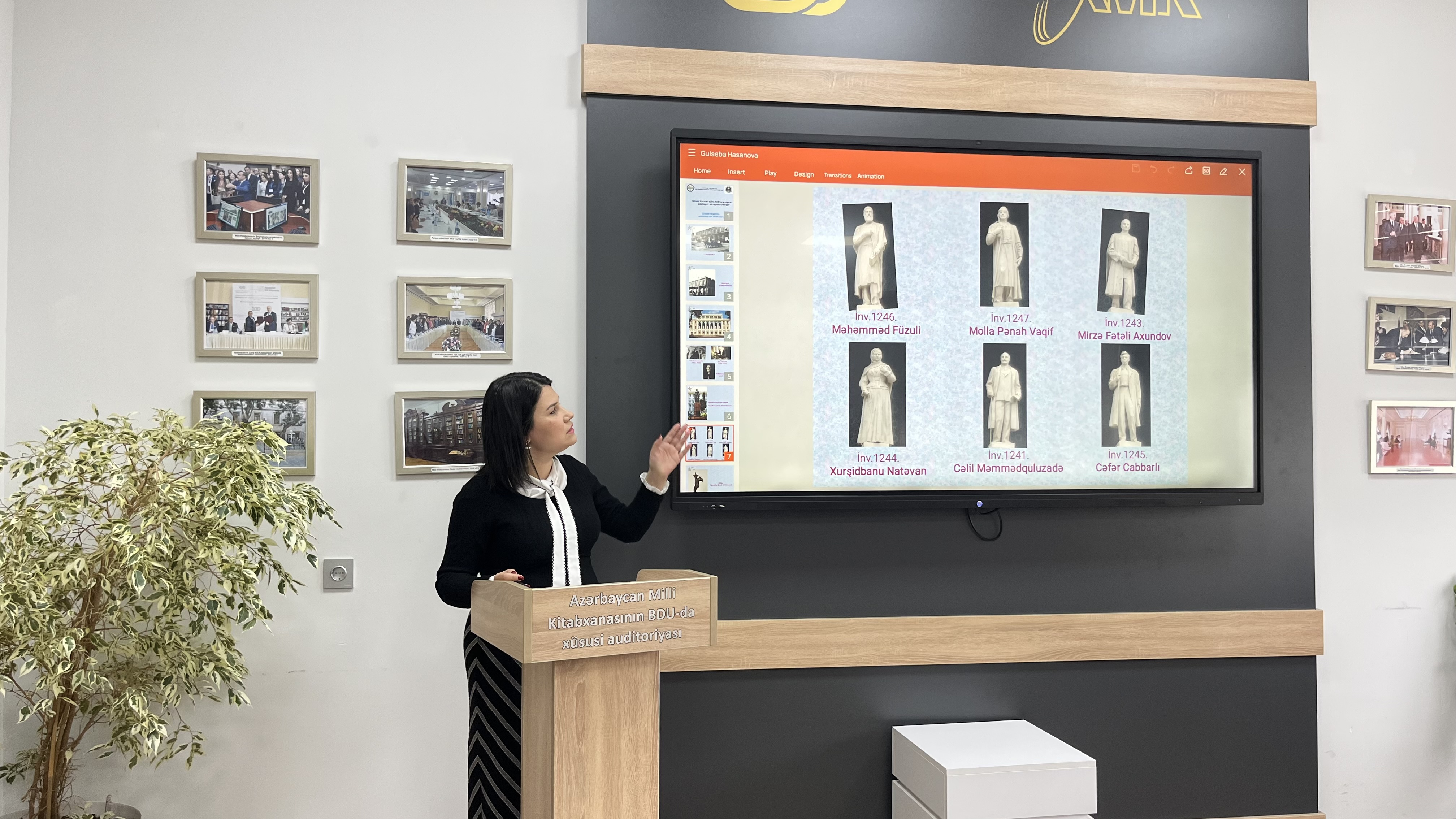 Bakı Dövlət Universitetinin (BDU) İnformasiya və sənəd menecmenti fakültəsində professor-müəllim heyətinin və “Muzey, arxiv işi və abidələrin qorunması” ixtisası üzrə təhsil alan tələbələrin iştirakı ilə Nizami Gəncəvi adına Milli Azərbaycan Ədəbiyyatı Muzeyinin fəaliyyətinə həsr olunmuş elmi seminar keçirilib. Elmi seminarda Milli Azərbaycan Ədəbiyyatı Muzeyinin şöbə müdiri, sənətşünaslıq üzrə fəlsəfə doktoru Gülsəba Həsənova mövzu üzrə məruzə edib.