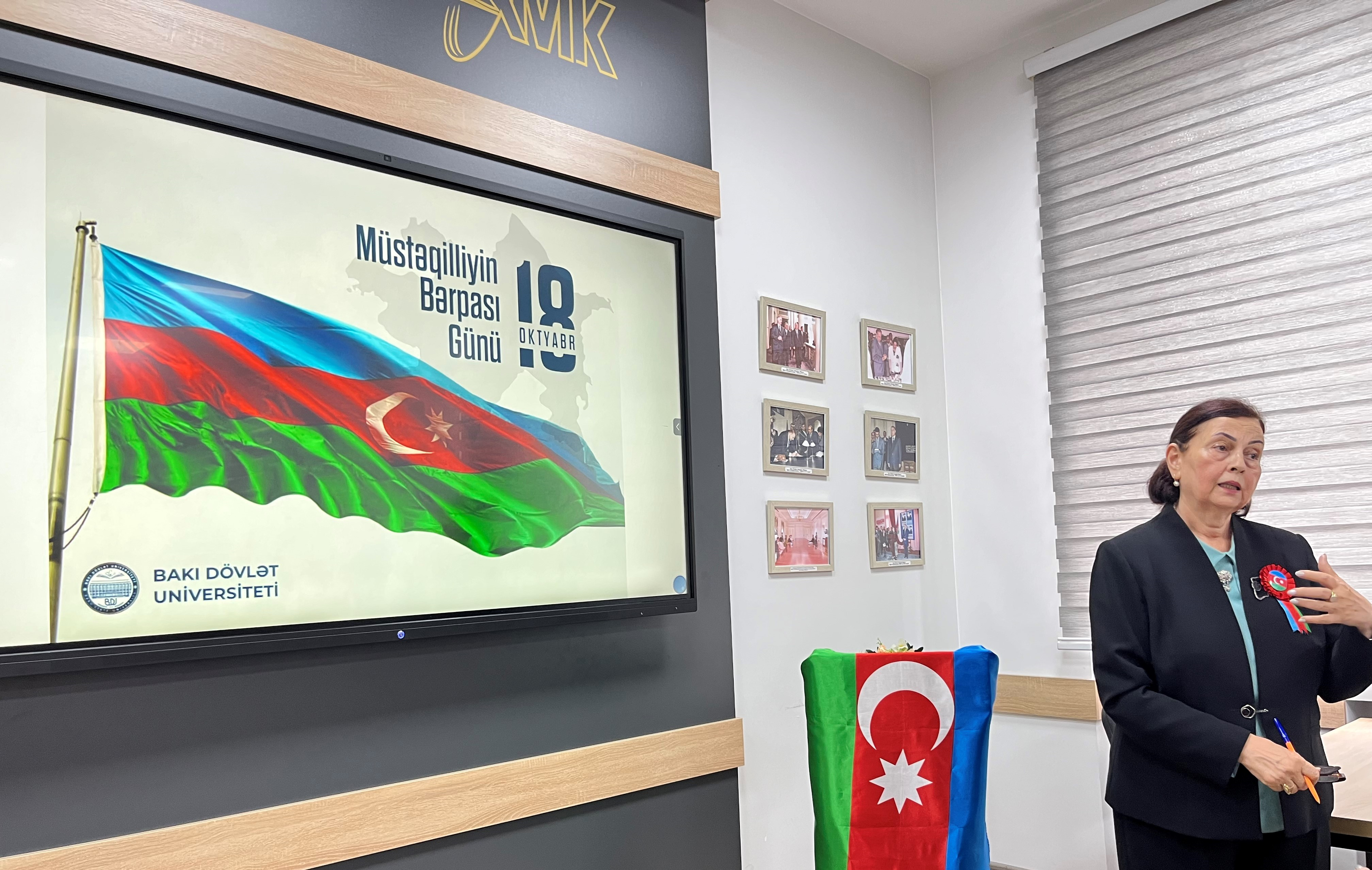 Bakı Dövlət Universitetinin (BDU) İnformasiya və sənəd menecmenti fakültəsində 18 oktyabr – Müstəqilliyin Bərpası Gününə həsr edilmiş xüsusi dərs təşkil olunub.