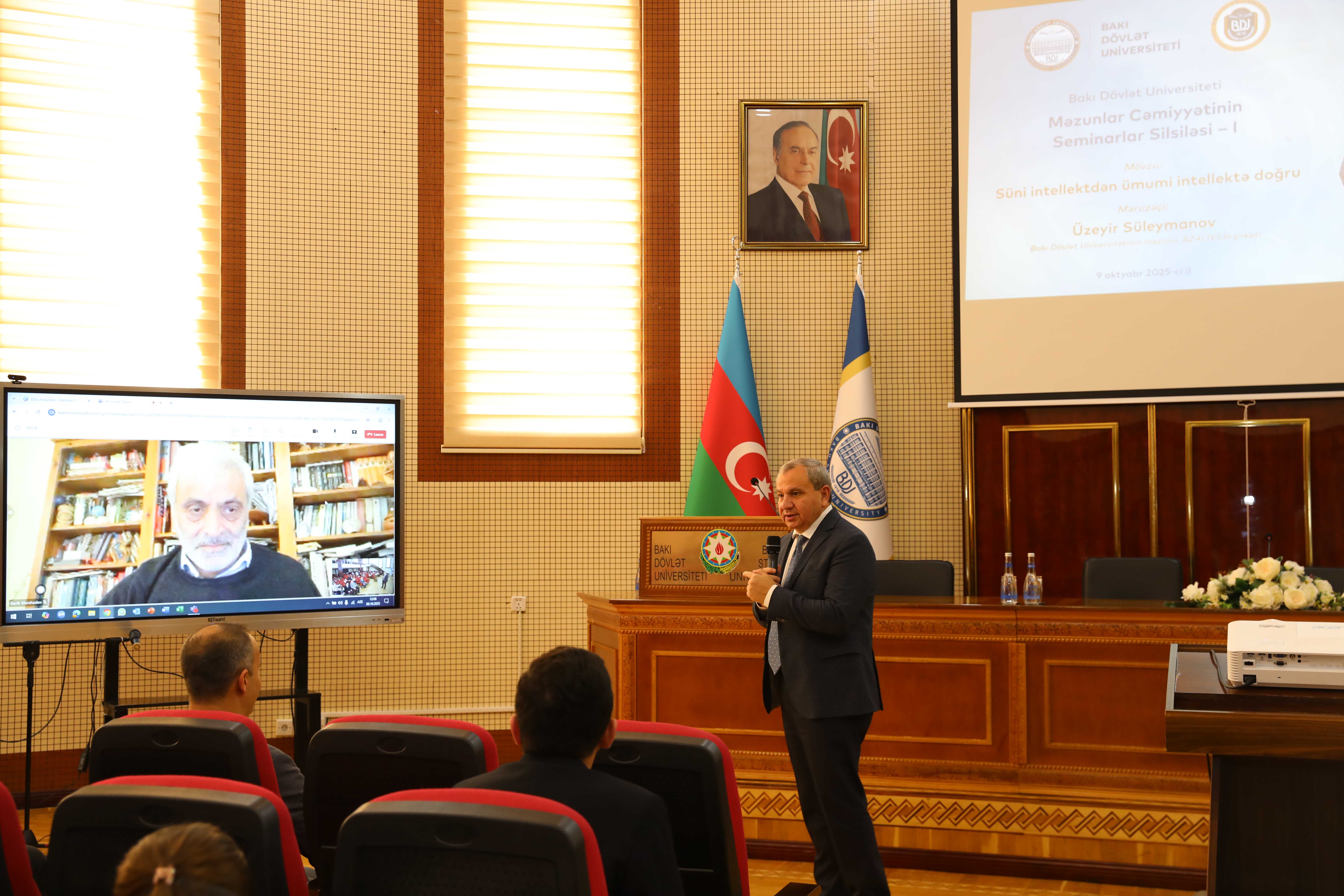 BDU Bakı Dövlət Universitetinin (BDU) Məzunlar Cəmiyyətinin silsilə seminarlarına başlanılıb. Layihənin ilk qonağı BDU məzunu, AZAI TECH şirkətinin qurucusu və rəhbəri Üzeyir Süleymanov olub. O, tələbələrə "Süni intellektdən ümumi intellektə doğru" mövzusunda seminar keçib.