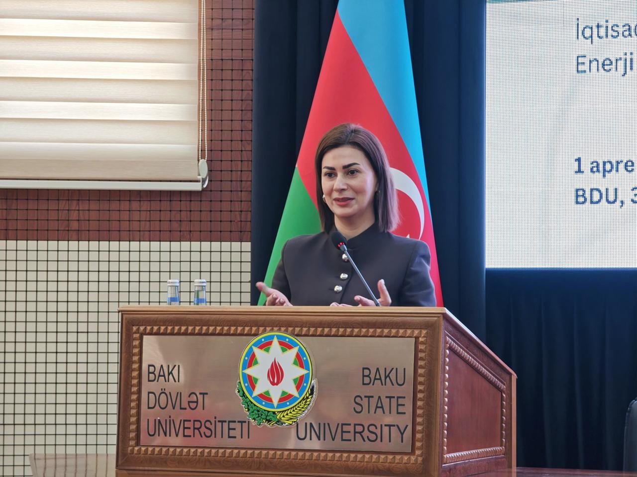 BDU-nun bakalavr və magistr məzunu Aysel Yaqubova çıxışında Universitetdə keçdiyi təhsil yolundan, BDU-nun onun peşəkar kadr kimi formalaşmasında oynadığı roldan və uzun illər diplomatik xidmətdə qazandığı təcrübədən danışıb. O, son dövrlərdə alternativ enerji mənbələrindən istifadənin aktuallaşdığını qeyd edib, iqlim dəyişiklikləri və dayanıqlı inkişaf məsələlərinin vacibliyini diqqətə çatdırıb.