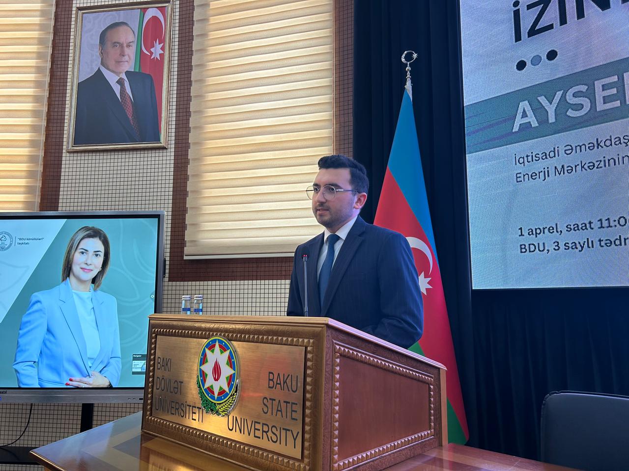 Bakı Dövlət Universitetində (BDU) “BDU könüllüləri” təşkilatının təşəbbüsü ilə həyata keçirilən “Məzunun izində” layihəsi çərçivəsində növbəti görüş keçirilib. Tədbirin qonağı İqtisadi Əməkdaşlıq Təşkilatının (İƏT) Təmiz Enerji Mərkəzinin (CECECO) icraçı direktoru, BDU-nun məzunu Aysel Yaqubova olub.