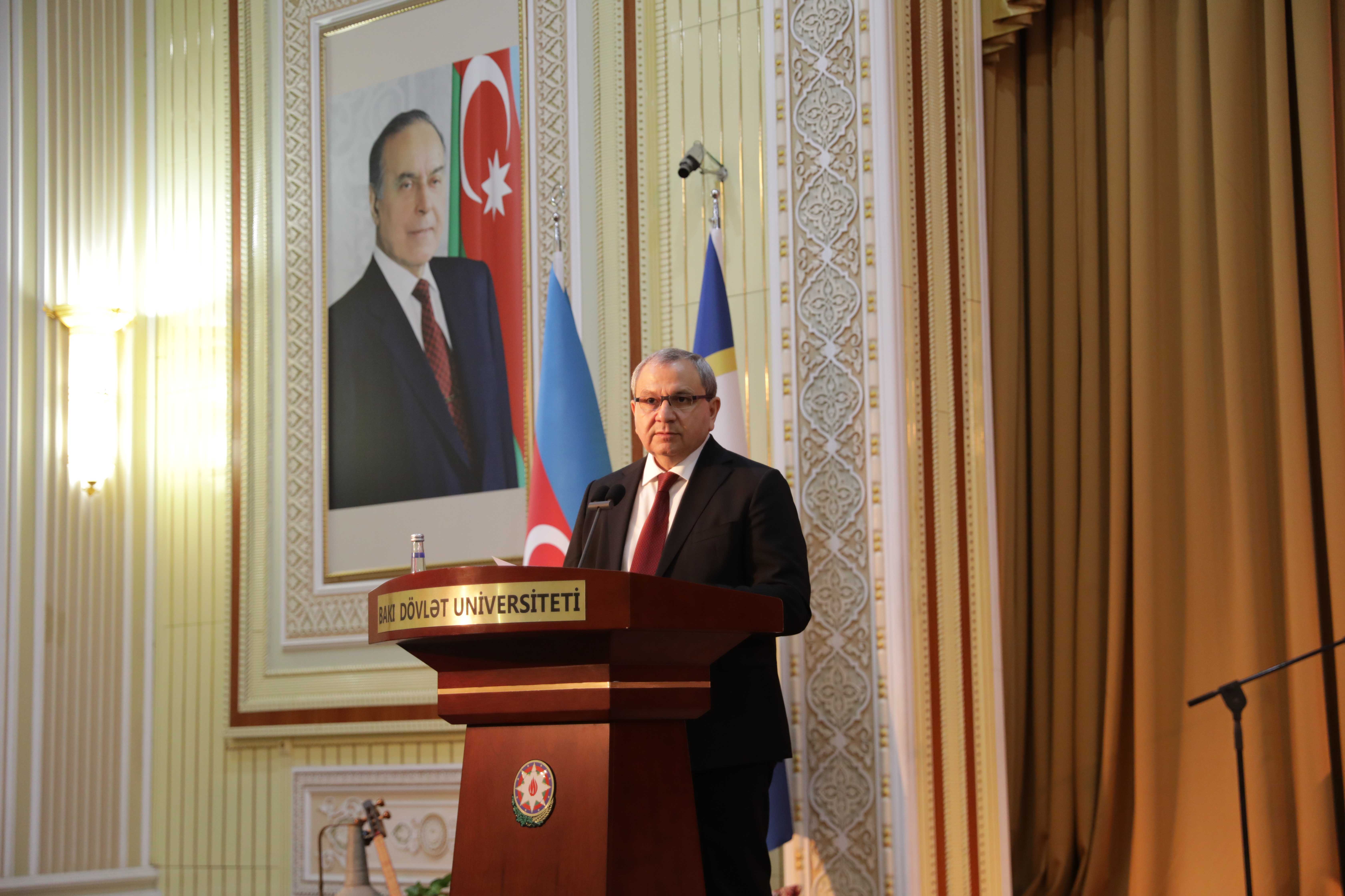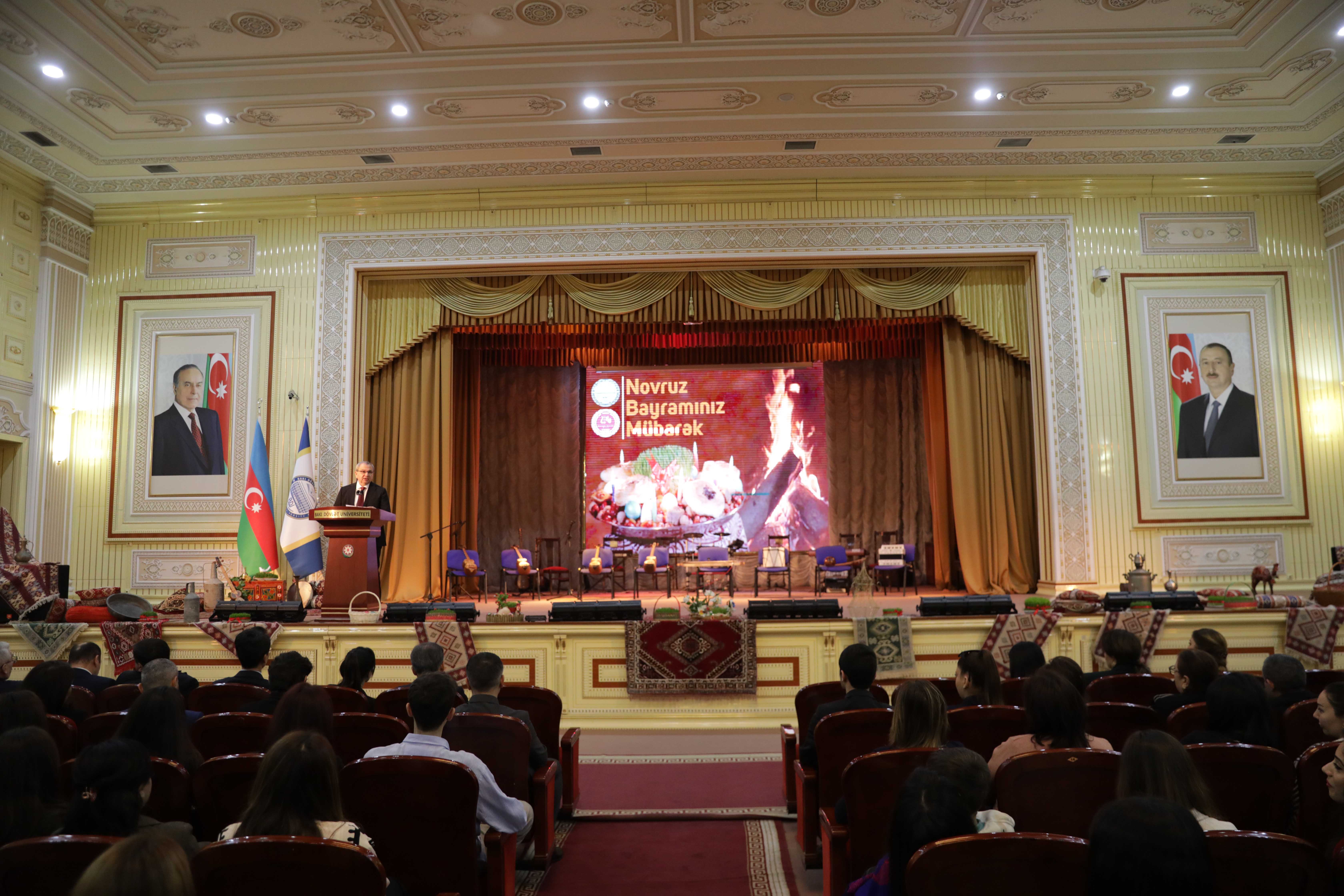 Mərasimdə çıxış edən BDU rektoru Elçin Babayev Universitet əməkdaşlarını təbrik edib, onlara uğurlar arzulayıb. Rektor bildirib ki, Novruz əsrlər boyu milli-mənəvi dəyərlərimizi, adət-ənənələrimizi və birlik ruhumuzu yaşadan müqəddəs bir bayramdır. Bu bayram təbiətin oyanışını, həyatın yenidən canlanmasını, ümidin və yeniliyin başlanğıcını simvolizə edir. Novruz yalnız mövsüm dəyişikliyi deyil, həm də insanların mənəvi cəhətdən yenilənməsi, saflaşması və gələcəyə daha böyük inamla baxmasının rəmzidir. Bu gün Azərbaycan dövləti öz milli dəyərlərinə sadiq qalaraq dinamik inkişaf yolu ilə irəliləyir, beynəlxalq aləmdə mövqeyini daha da gücləndirir: “Belə bir inkişaf mərhələsində Novruz bayramı bizim üçün yalnız ənənə deyil, həm də milli kimliyimizin qorunması, zəngin mədəni irsimizin yaşadılması və gələcək nəsillərə ötürülməsi baxımından xüsusi əhəmiyyət daşıyır. 2026-cı ilin ölkəmizdə “Şəhərsalma və Memarlıq İli” elan olunması da yenilənmə, quruculuq və davamlı inkişaf ideyalarının təntənəsidir. Tarix boyu Azərbaycan xalqının görkəmli ziyalıları, alimləri və mütəfəkkirləri Novruz bayramına xüsusi ehtiramla yanaşıb, onun fəlsəfi və mənəvi dərinliyini yüksək qiymətləndiriblər. Bu bayramın rəsmi status alması müstəqil dövlətimizin mühüm nailiyyətlərindən biridir. Multikultural dəyərlərin və tolerantlıq ənənələrinin güclü olduğu ölkəmizdə Novruz bayramı müxtəlif mədəniyyətlərin harmoniyasını və ümumbəşəri dəyərlərin vəhdətini əks etdirir. Novruz adət-ənənələrində xalqımızın müdrikliyi, humanizmi və yüksək əxlaqi keyfiyyətləri aydın şəkildə öz əksini tapır. Bu bayram insanları bir araya gətirir, ailə və cəmiyyət bağlarını möhkəmləndirir, qarşılıqlı hörmət və etimadı gücləndirir”.