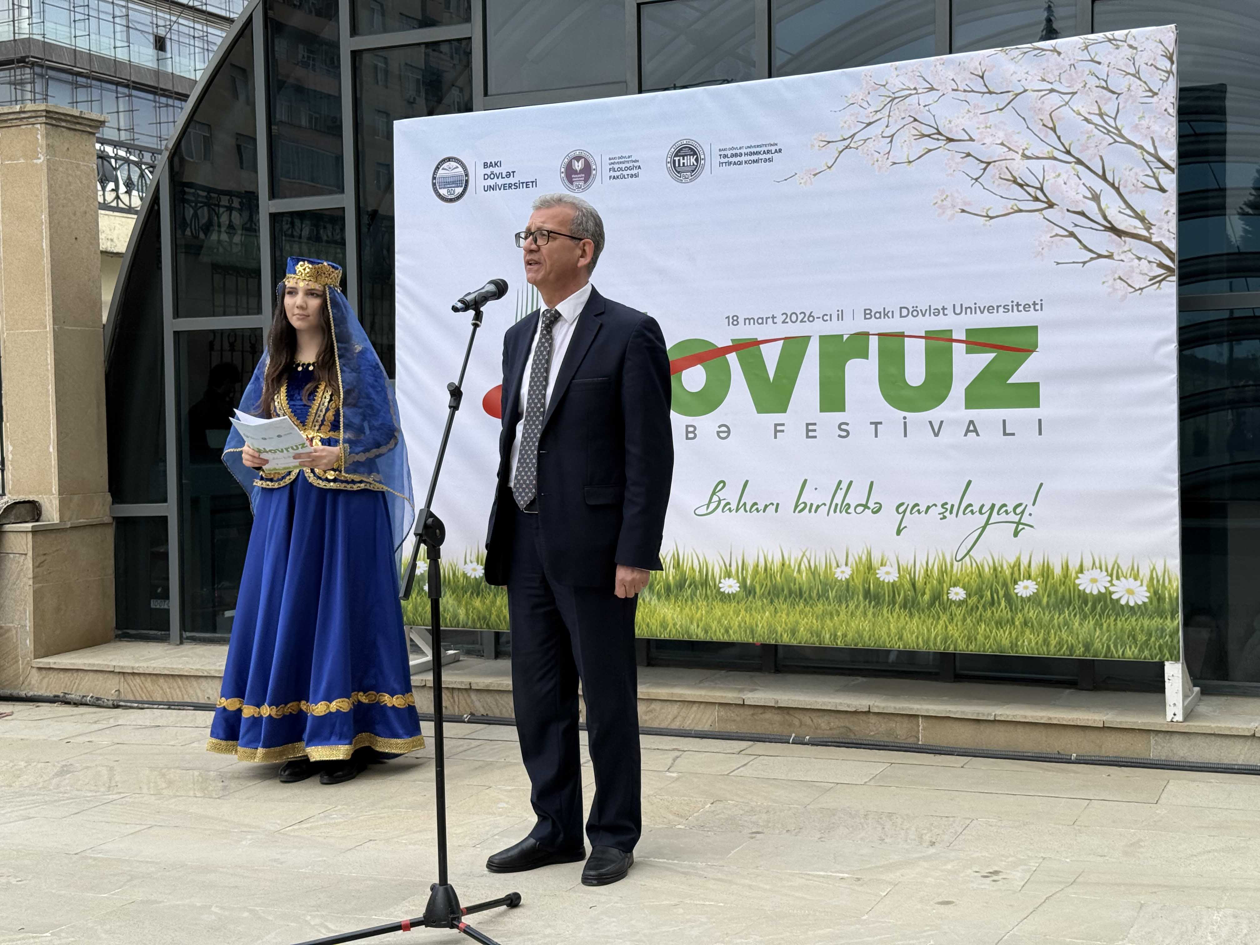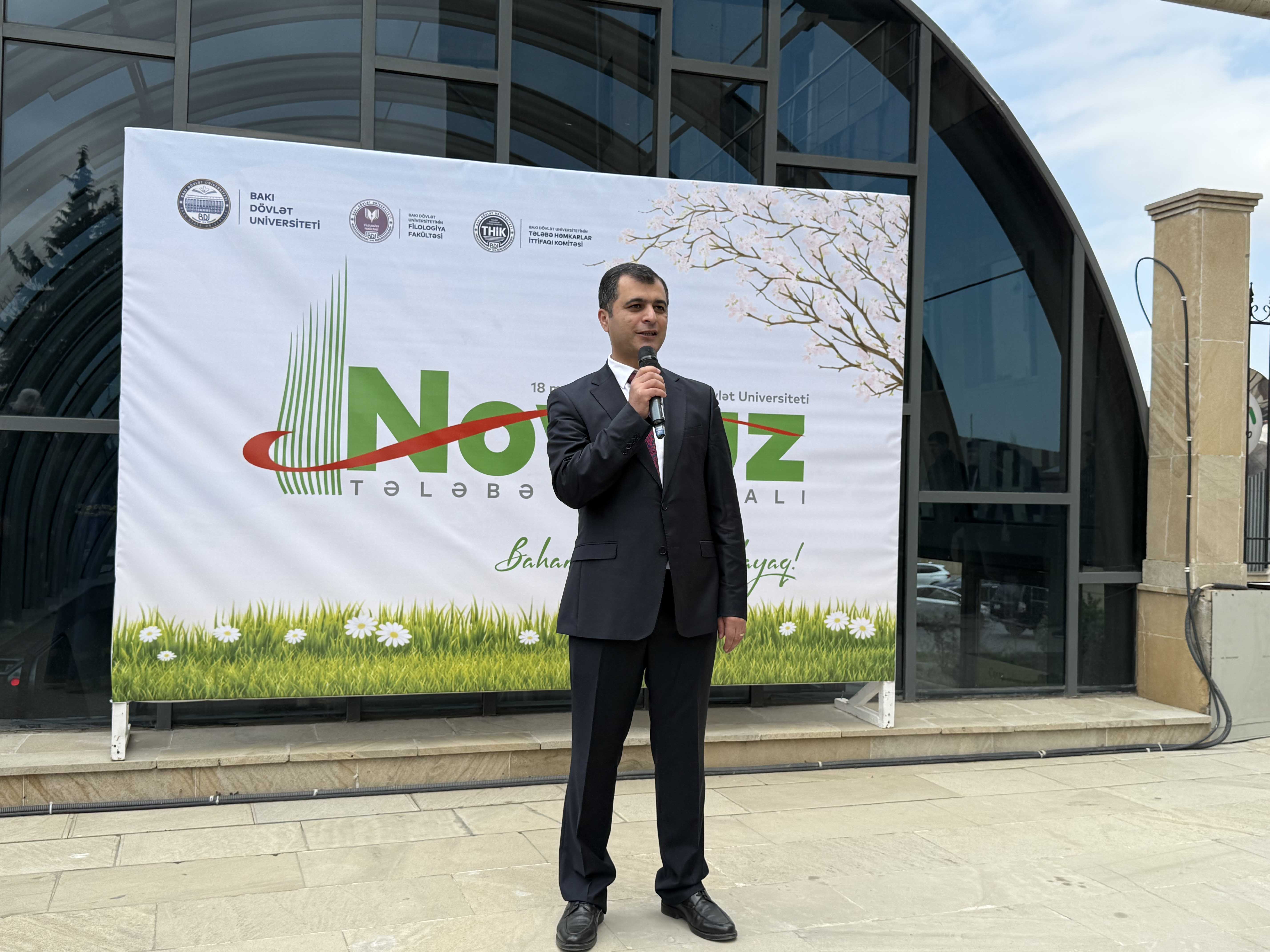 Tədbirdə çıxış edən BDU-nun elm və innovasiyalar üzrə prorektoru Hüseyn Məmmədov tələbələri Novruz bayramı münasibətilə təbrik edib, onlara uğurlar arzulayıb. O qeyd edib ki, Novruz bayramı xalqımızın milli-mənəvi dəyərlərini, zəngin mədəniyyətini və əsrlər boyu qorunub saxlanılan adət-ənənələri özündə əks etdirən ən əziz bayramlardan biridir. Novruz yalnız təbiətin oyanışı deyil, insanların qəlbində yenilənmə, ümid və birlik hisslərini gücləndirən xüsusi bir gündür. Bütöv, suveren Azərbaycanda Novruzun böyük təntənə ilə qeyd olunması, bayram tonqallarının ölkəmizin hər bir guşəsində alovlandırılması milli birliyimizin və həmrəyliyimizin bariz ifadəsidir. Prorektor vurğulayıb ki, 2009-cu ildən etibarən Novruz bayramının UNESCO-nun qeyri-maddi mədəni irs siyahısına daxil edilməsi onun beynəlxalq səviyyədə də yüksək dəyər qazandığını göstərir.