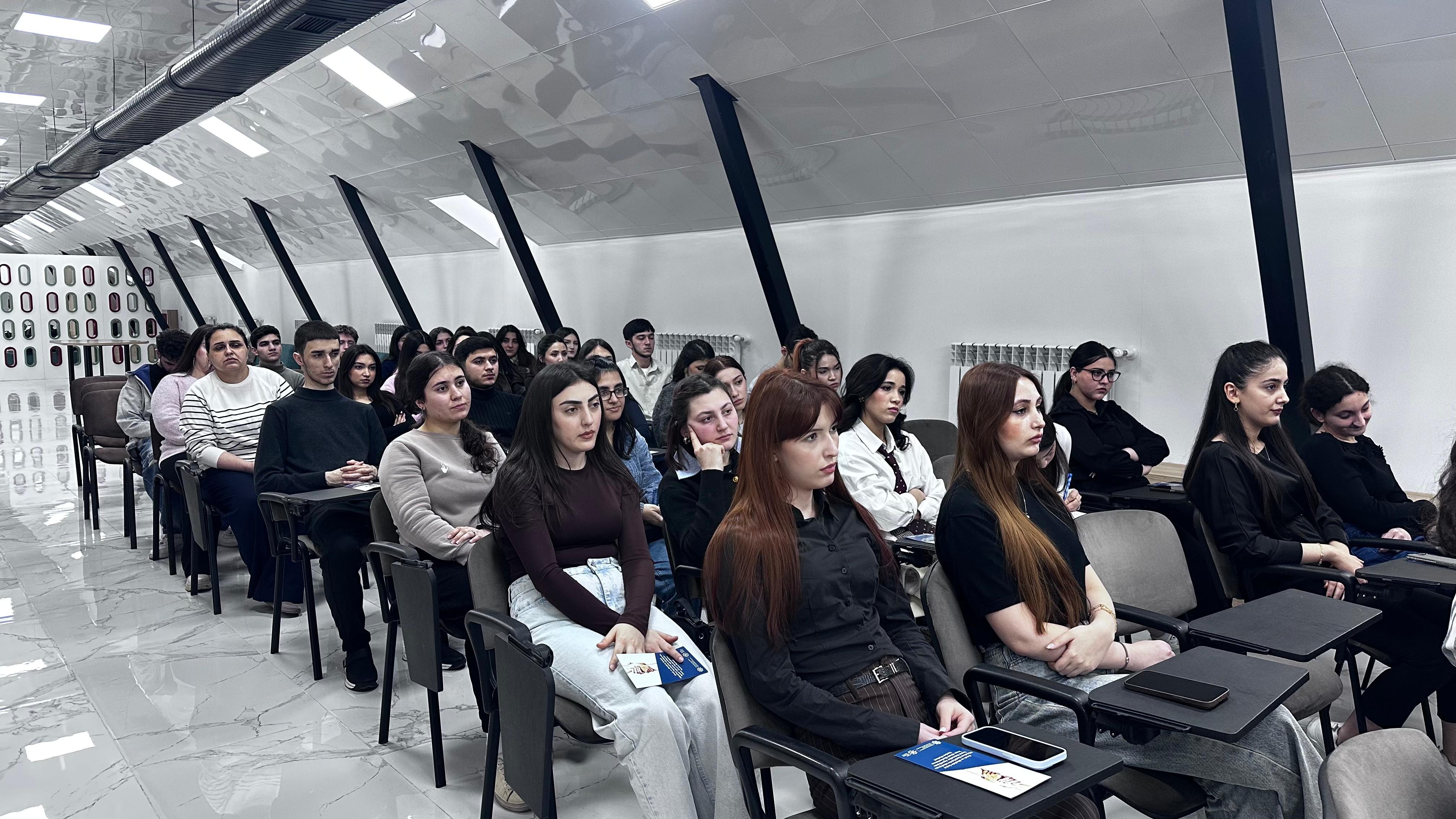 Mərkəzin əməkdaşı Fatimə Abışova insan alveri cinayətlərinin milli qanunvericilikdə və beynəlxalq sənədlərdəki tənzimlənmə formalarına aydınlıq gətirib. Təlimdə insan alverinin insanlıq əleyhinə cinayətlər, müharibə cinayətləri, adam oğurluğu, insan qaçaqmalçılığı ilə fərqi izah olunub. İnsan alveri qurbanlarının tora salınma üsullarından danışan təlimçi mövzu ilə bağlı statistik məlumatları da tələbələrin diqqətinə çatdırıb.