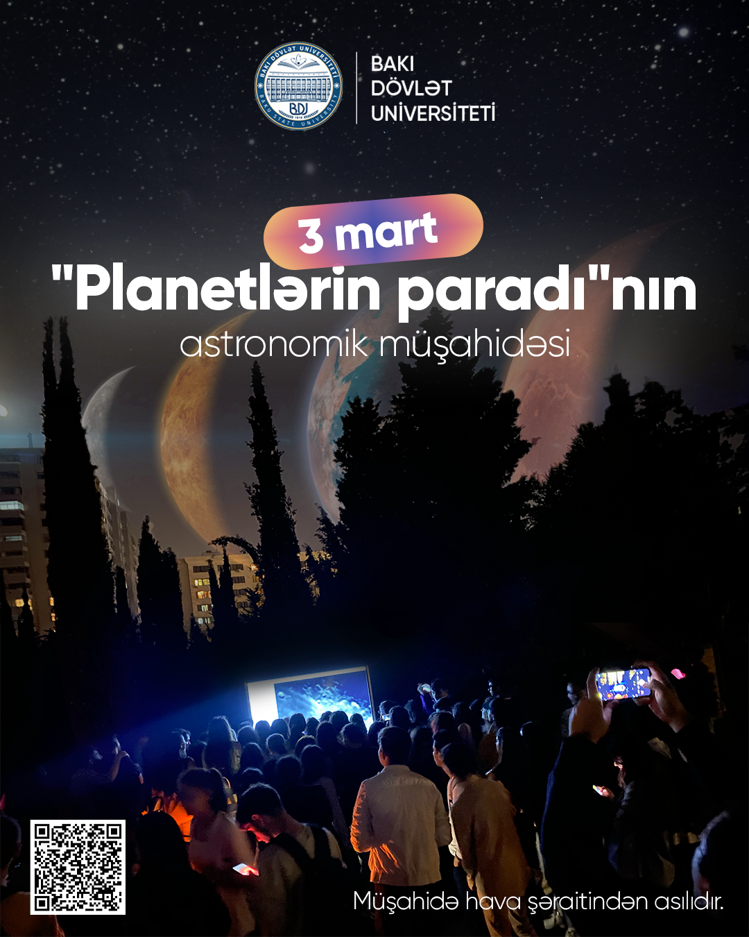 Martın 3-də Bakı Dövlət Universitetində (BDU) "Planetlərin paradı"nın astronomik müşahidəsi keçiriləcək.