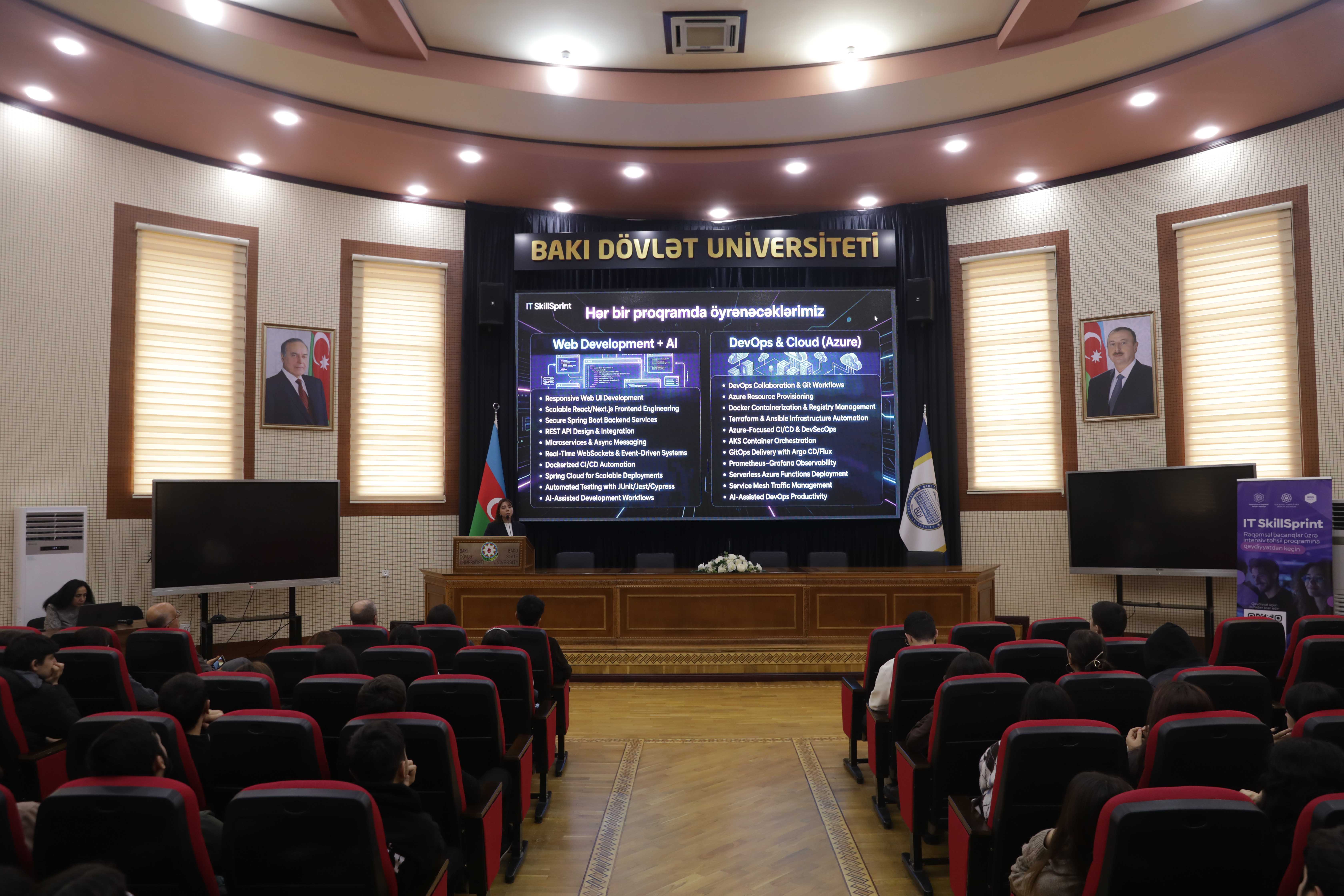 Seminarda “IT SkillSprint” proqramının məqsədləri, məzmunu və iştirak imkanları barədə ətraflı məlumat verilib. Tədbirdə BDU-nun Elmi fəaliyyətin təşkili və innovasiyalar Mərkəzinin direktoru Farid Nağıyev proqramın gənclərin rəqəmsal bacarıqlarının inkişafı, eləcə də müasir əmək bazarının tələblərinə cavab verən kadrların hazırlanması baxımından əhəmiyyətini vurğulayıb.