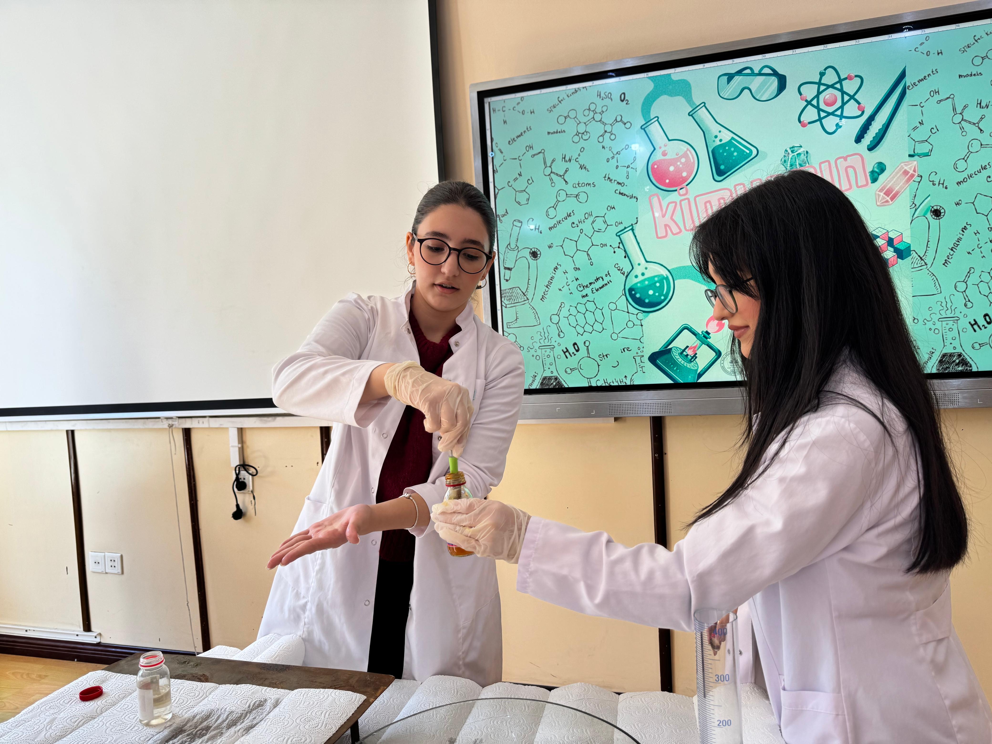 Tələbələr müxtəlif maddələrin qarşılıqlı təsiri nəticəsində baş verən rəng dəyişmələri, qaz ayrılması və istilik effekti kimi fiziki və kimyəvi hadisələri yaxından müşahidə ediblər.