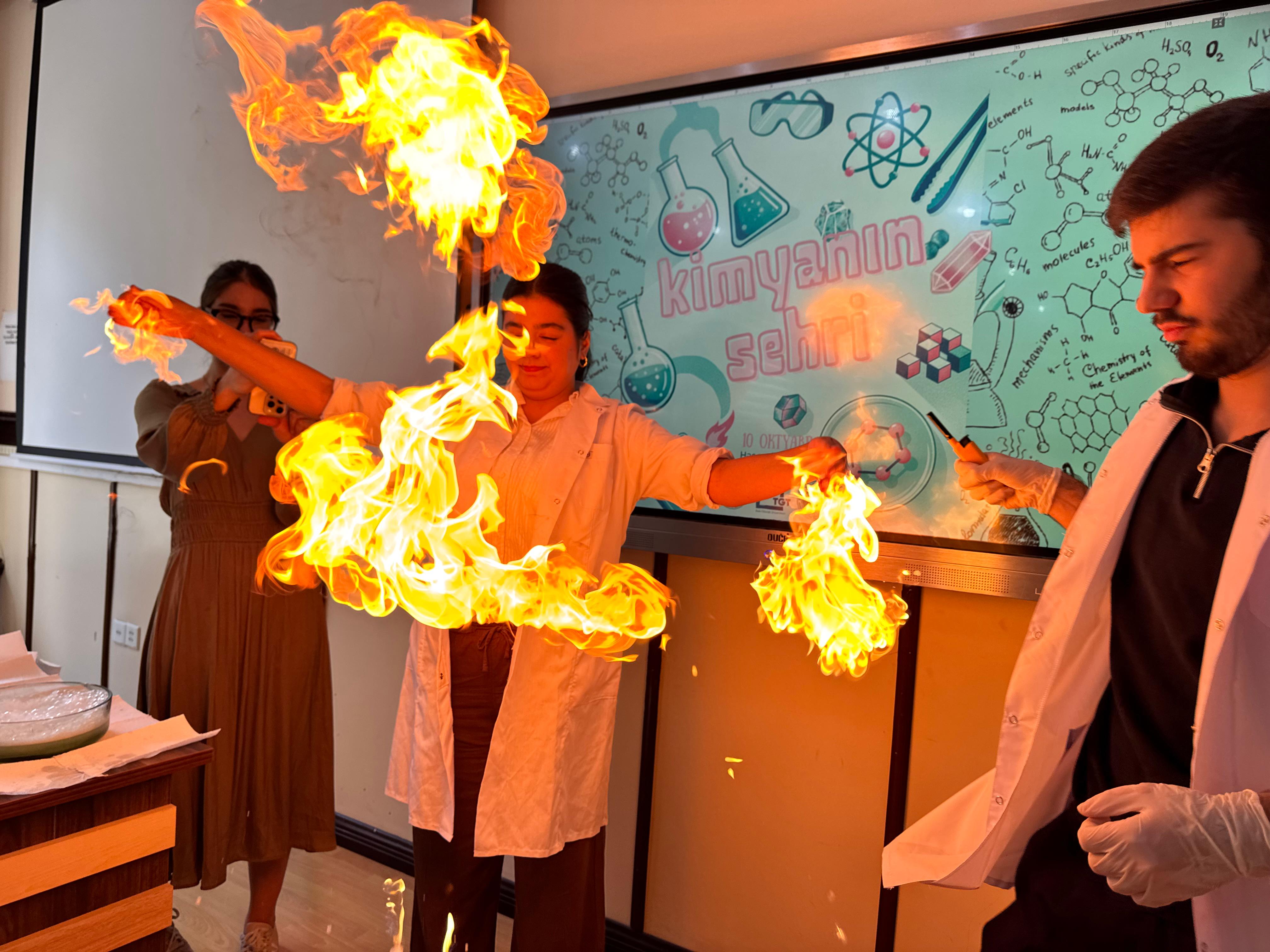 Tədbir çərçivəsində fakültə tələbələrinin iştirakı ilə bir sıra maraqlı kimyəvi təcrübələr — “Fil dişi reaksiyası”, “Vulkan reaksiyası”, “Bixromat-xromat rəng dəyişmə reaksiyası”, “Süni qan reaksiyası” və “Soyuq alov reaksiyası” nümayiş etdirilib.