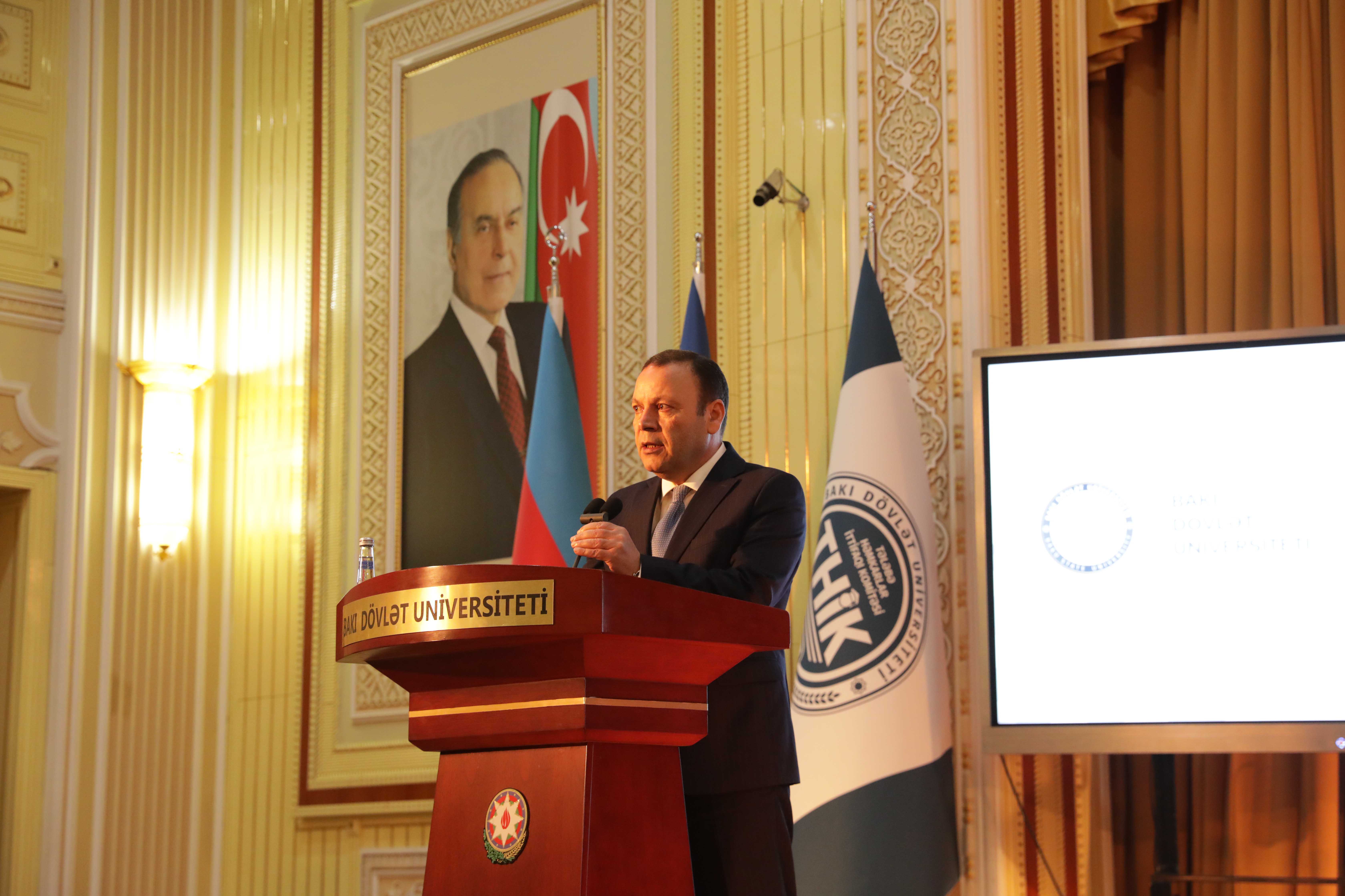 BDU-nun sosial məsələlər, tələbələrlə iş və ictimaiyyətlə əlaqələr üzrə prorektoru Əliş Ağamirzəyev bildirib ki, gənclər hər bir xalqın xoşbəxt gələcəyə olan ümidi, cəmiyyətin dinamik, hərəkətverici, fəal hissəsidir. Bu gün müstəqil, qalib, suveren ölkəmizdə dövlətçiliyin daha da möhkəmləndirilməsində Azərbaycan gənclərinin aparıcı rolu var: “Ümummilli Lider Heydər Əliyev tərəfindən əsası qoyulan dövlət gənclər siyasəti Azərbaycan Respublikasının Prezidenti, Müzəffər Ali Baş Komandan İlham Əliyevin rəhbərliyi ilə uğurla davam və inkişaf etdirilir. Azərbaycan gənclərinin tarixi Zəfərimizin qazanılmasında, ölkəmizin bütün sahələrdə inkişafında, Qarabağda, Şərqi Zəngəzurda aparılan quruculuq işlərində imzası var”.