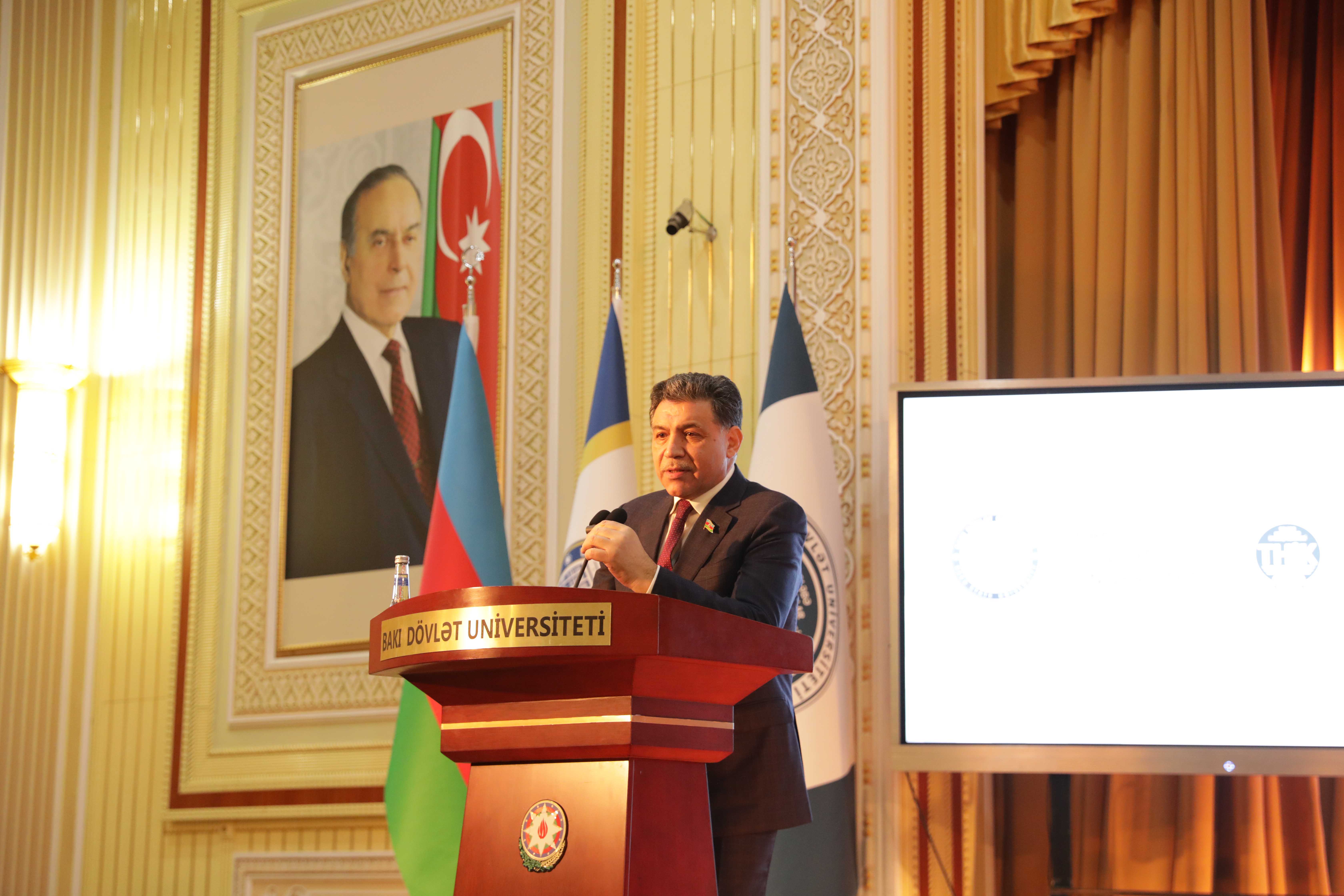 BDU ailəsinin üzvləri olan tələbə və məzunların ölkəmizdə dövlət gənclər siyasətinin həyata keçirilməsində mühüm rol oynadığını deyən prorektor bütün bu vəzifələrin təşkilatlanmış formada həyata keçirilməsi üçün Universitet tərəfindən mühüm addımlar atıldığını deyib. Qeyd edib ki, 2020-ci ildə ali məktəblər arasında ilk dəfə BDU-da Humanitar məsələlər və gənclər siyasəti şöbəsinin yaradılması bu baxımdan yüksək dəyərləndirilməlidir. Dövlət gənclər siyasətinə ölkənin ən böyük tələbə kontingenti ilə öz faydasını verən BDU-da bu prosesin aktiv iştirakçılarından biri də yarım əsrdən çoxdur uğurlu fəaliyyət nümayiş etdirən Tələbə Həmkarlar İttifaqı Komitəsidir. 1974-cü ildən fəaliyyət göstərən BDU Tələbə Həmkarlar İttifaqı Komitəsi ölkənin ali təhsil müəssisələri arasında ən böyük və fəal tələbə həmkarlar təşkilatıdır. Öz sıralarında BDU-nun tələbə, magistrant və doktorantlarını birləşdirən BDU THİK tələbələrlə sistemli iş aparmaqla yanaşı, Ümummilli Lider Heydər Əliyev irsinin, azərbaycançılıq ideyasının, dövlətçilik ənənələrinin, milli-mənəvi dəyərlərin təbliği istiqamətində tədbirlər həyata keçirir: “Bu gün ilk dəfə keçirilən Tələbə Həmkarların I Həmrəylik Forumunun uğurlu nəticələr verəcəyinə, həm BDU tələbələrinin, həm də digər ali təhsil müəssisələrindən olan gənclərin bu prosesdə aktiv iştirak edəcəyinə inanıram”.