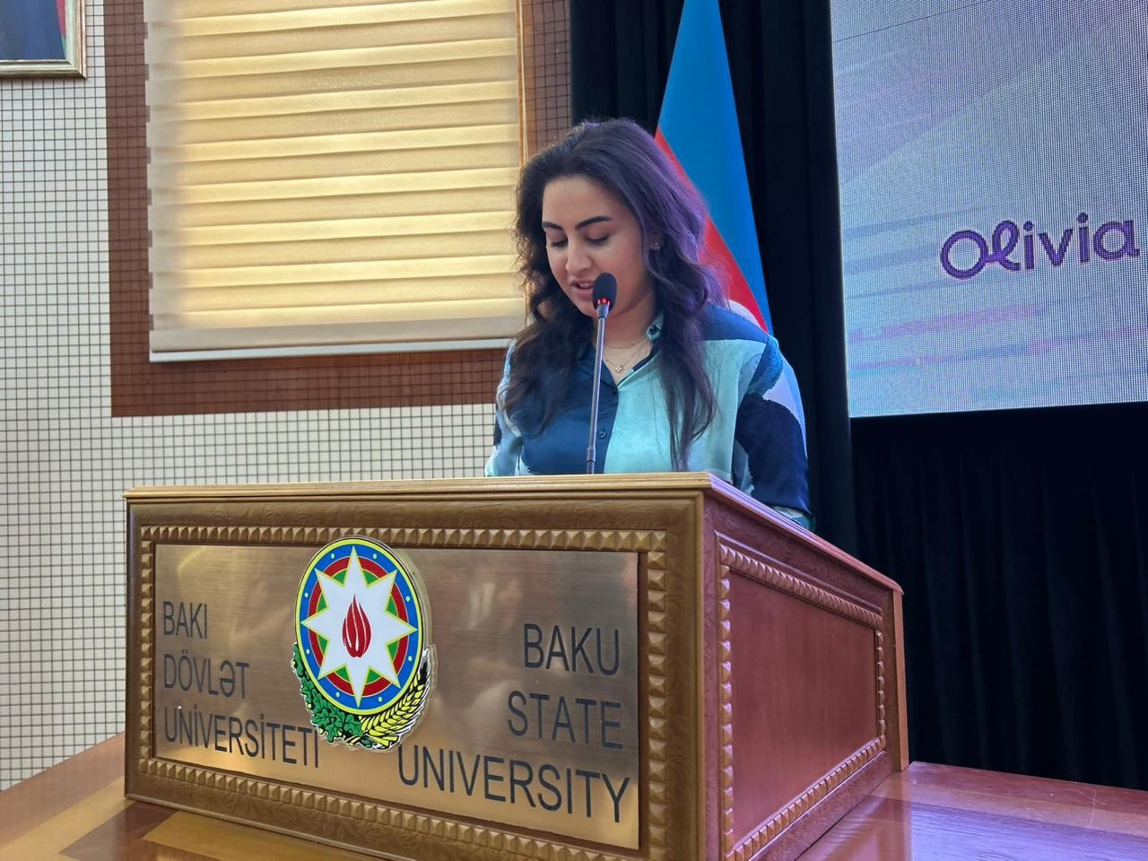“Olivia Beauty & Care” MMC-nin marketinq meneceri Aygün Mirzalıyeva çıxışında şirkətin tələbələr üçün etdiyi endirimlər, bu endirimlərdən və digər sərfəli imkanlardan istifadə qaydalarını izah edib. Qeyd edib ki, sıx dərs qrafiki, stres və yanlış qidalanma kimi amillər tələbələrin dəri vəziyyətinə birbaşa təsir edir. Belə maarifləndirici görüşlər onların düzgün istiqamətləndirilməsi baxımından mühüm rol oynayır.