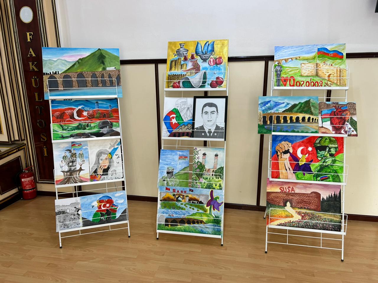 Sərgidə Kimya fakültəsinin tələbələri tərəfindən hazırlanan rəsm əsərləri nümayiş olunur. Əsərlərdə Qarabağ təbiətinin gözəlliyi, Şuşanın simvolu olan xarıbülbül gülü, qəhrəman şəhidlərimizin xatirəsinə həsr edilmiş mənəvi motivlər və Vətən sevgisini ifadə edən kompozisiyalar yer alır.