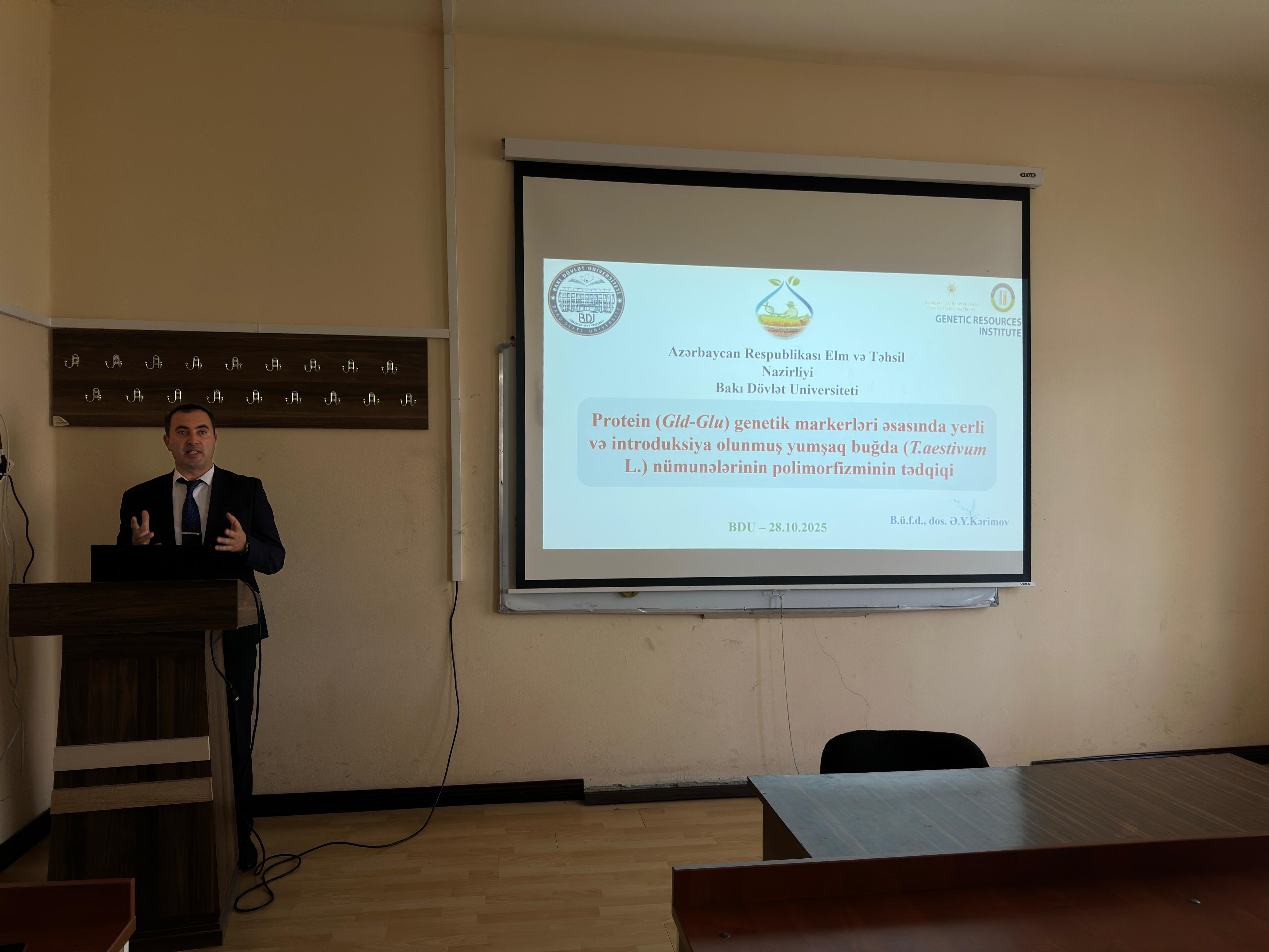 Bakı Dövlət Universitetinin (BDU) Biologiya fakültəsində “Protein (Gld-Glu) genetik markerləri əsasında yerli və introduksiya olunmuş yumşaq buğda (Triticum aestivum L.) nümunələrinin polimorfizminin tədqiqi” mövzusunda elmi seminar keçirilib.