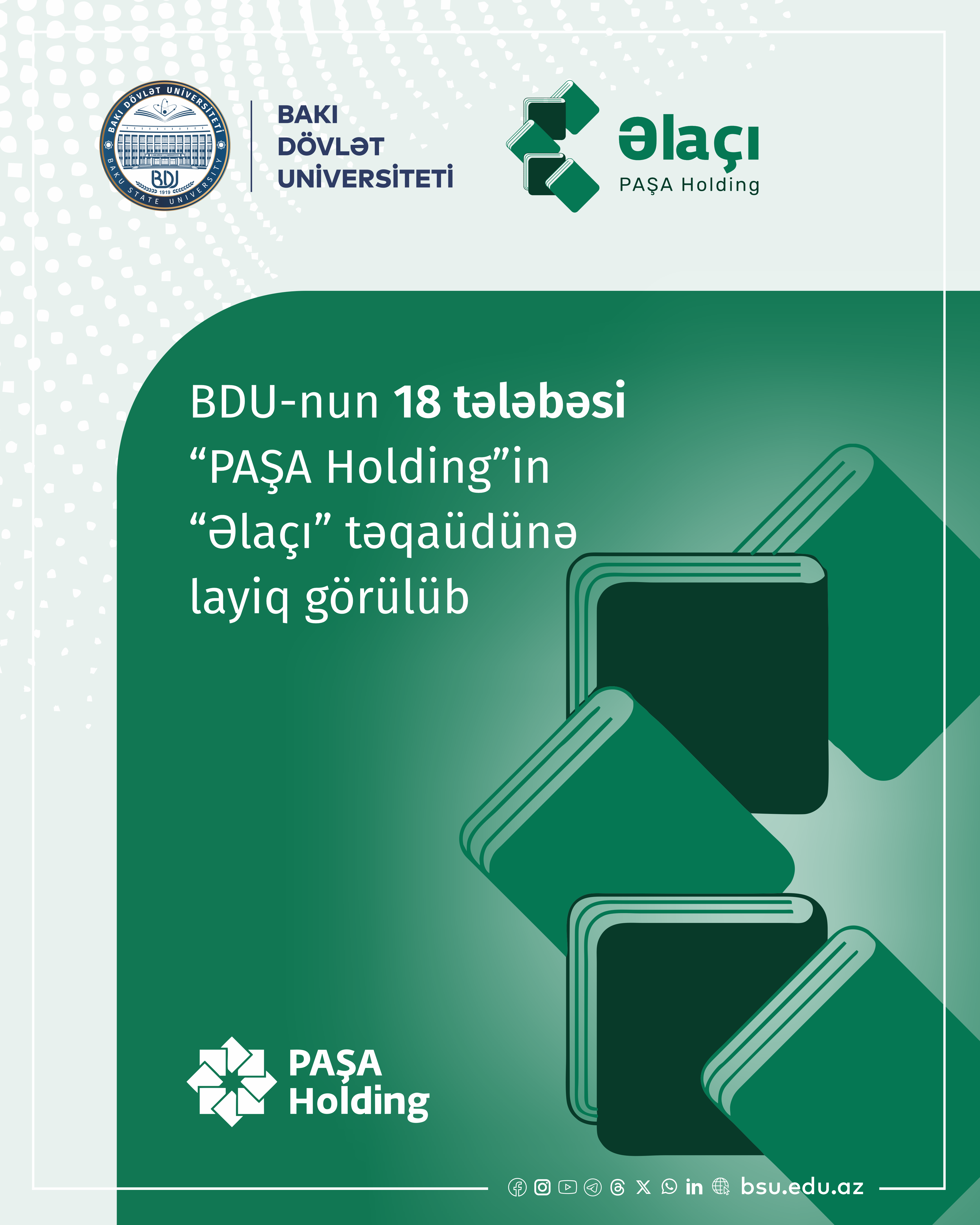 Bakı Dövlət Universitetinin (BDU) 18 tələbəsi 2025/2026-cı tədris ilini əhatə edən və “PAŞA Holding” tərəfindən dördüncüsü keçirilən “Əlaçı” təqaüd proqramının qalibi olub.