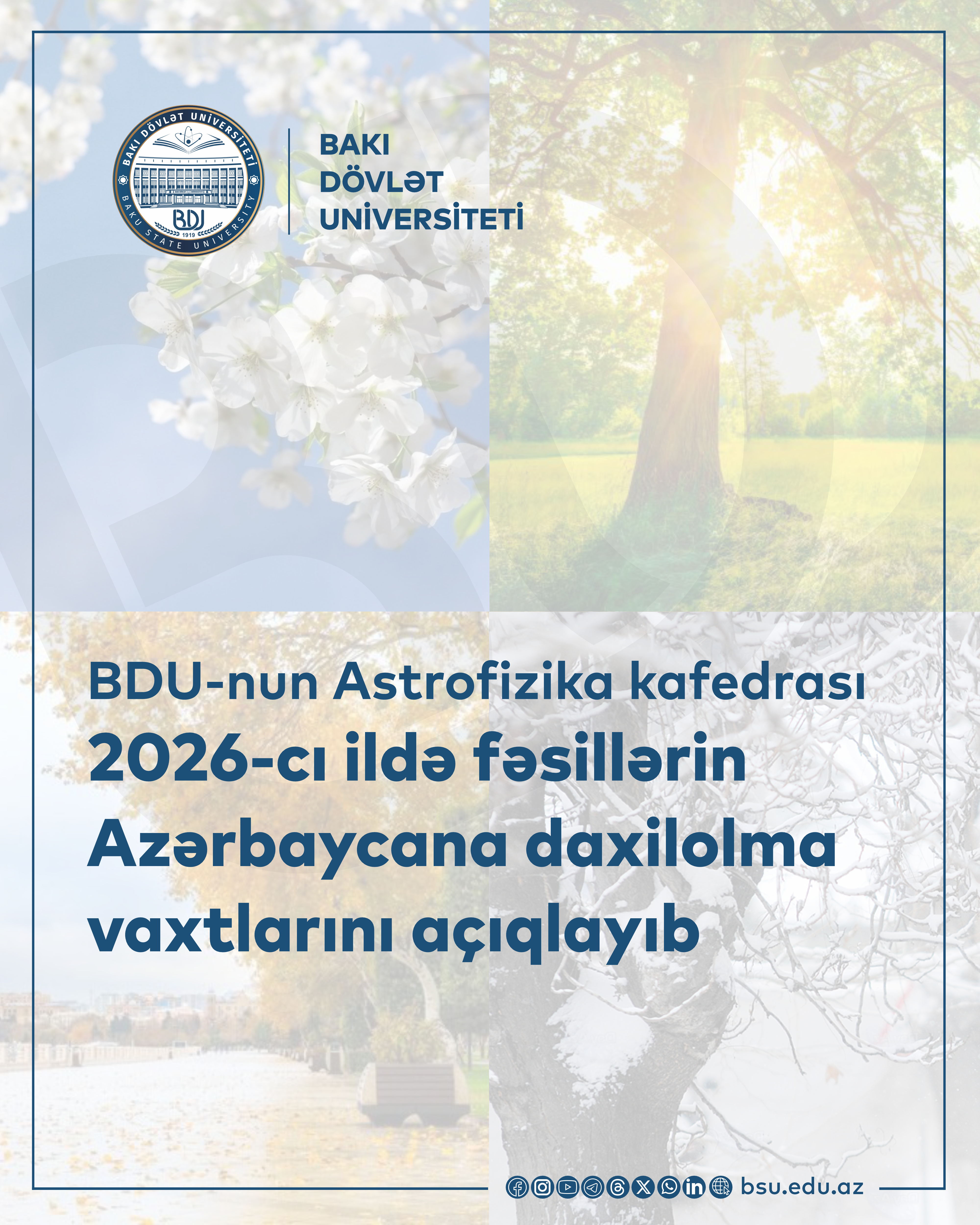 Bakı Dövlət Universitetinin (BDU) Fizika fakültəsinin Astrofizika kafedrası 2026-cı ildə fəsillərin Azərbaycana daxilolma vaxtlarını açıqlayıb.