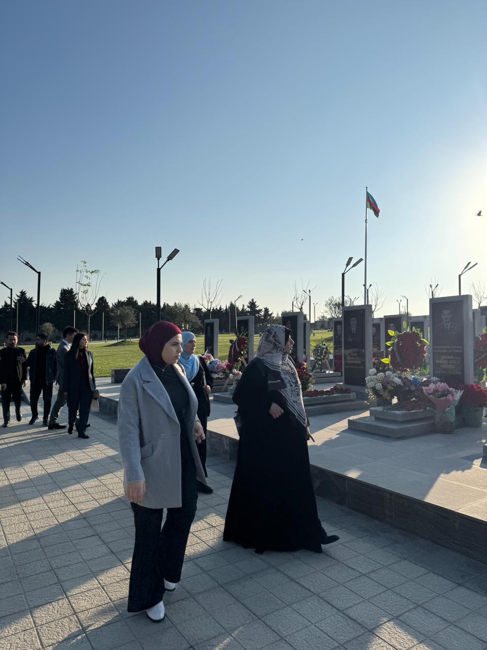Daha sonra tələbələr Şəhidlər xiyabanını ziyarət ediblər. Azərbaycanın ərazi bütövlüyü uğrunda həlak olan şəhidlərin əziz xatirəsi ehtiramla yad olunub. Ziyarət zamanı BDU-nun əcnəbi tələbələri Azərbaycanın haqq savaşı, Vətən müharibəsi və Zəfər Günü ilə bağlı məlumatlandırılıblar.