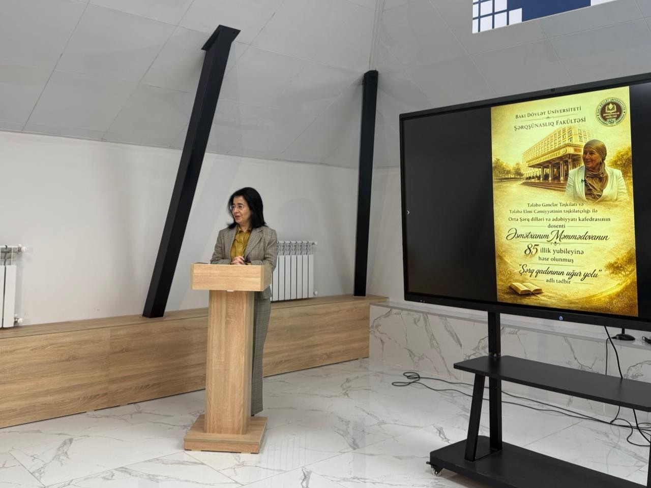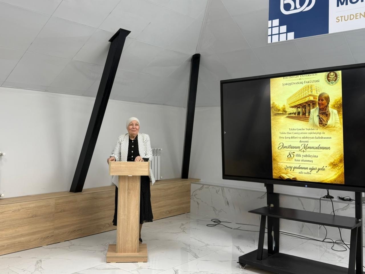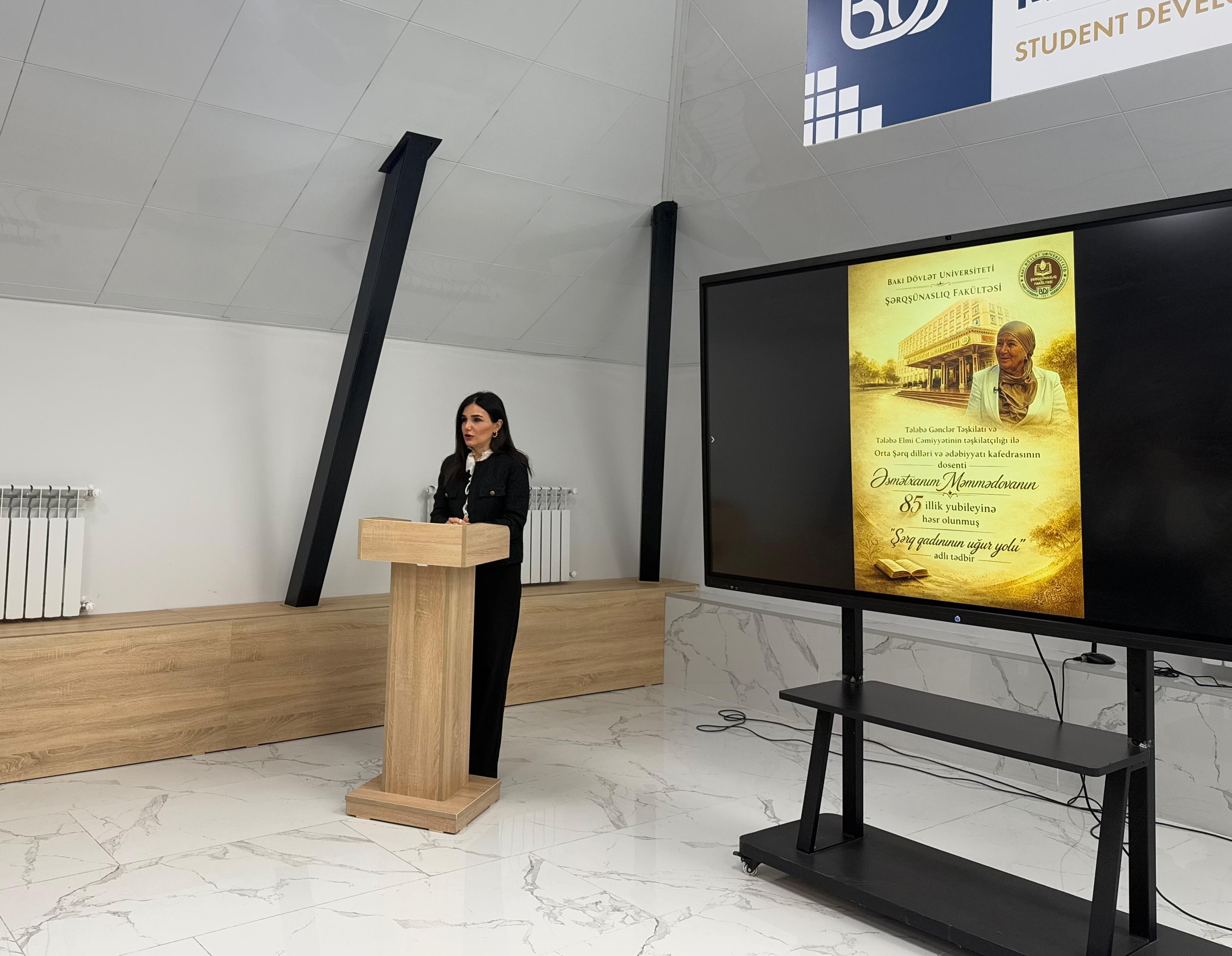 Bakı Dövlət Universitetinin (BDU) Şərqşünaslıq fakültəsinin Tələbə Elmi Cəmiyyətinin (TEC) və Tələbə Gənclər Təşkilatının (TGT) birgə təşkilatçılığı ilə Orta Şərq dilləri və ədəbiyyatı kafedrasının dosenti Əsmətxanım Məmmədovanın 85 illik yubileyinə həsr olunmuş “Şərq qadınının uğur yolu” adlı tədbir keçirilib.