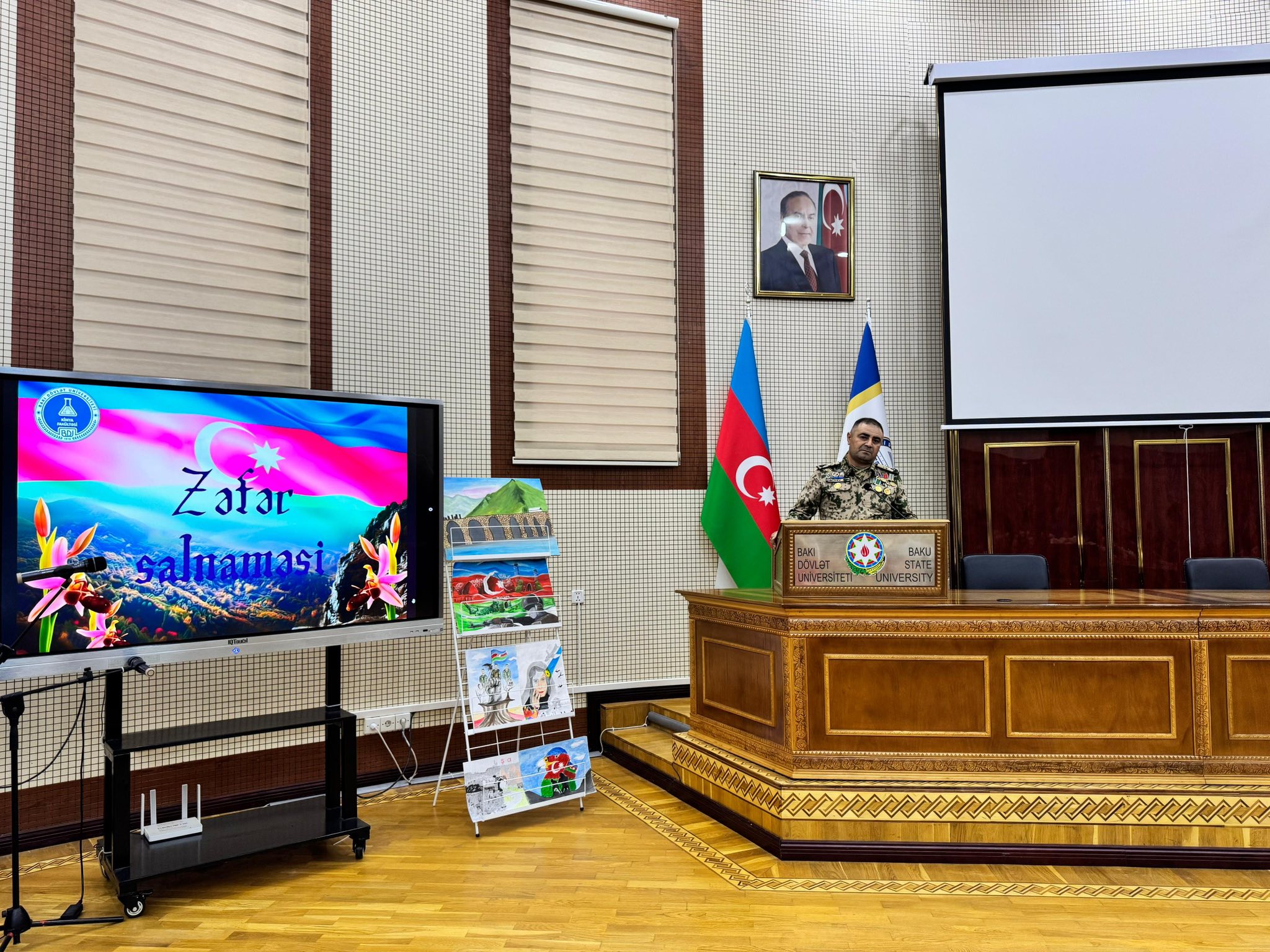 Bakı Dövlət Universitetinin (BDU) Kimya fakültəsi Tələbə Gənclər Təşkilatı (TGT) və Tələbə Həmkarlar İttifaqı Komitəsinin (THİK) birgə təşkilatçılığı ilə 8 Noyabr – Zəfər Gününə həsr olunmuş “Zəfər salnaməsi” adlı tədbir keçirilib.