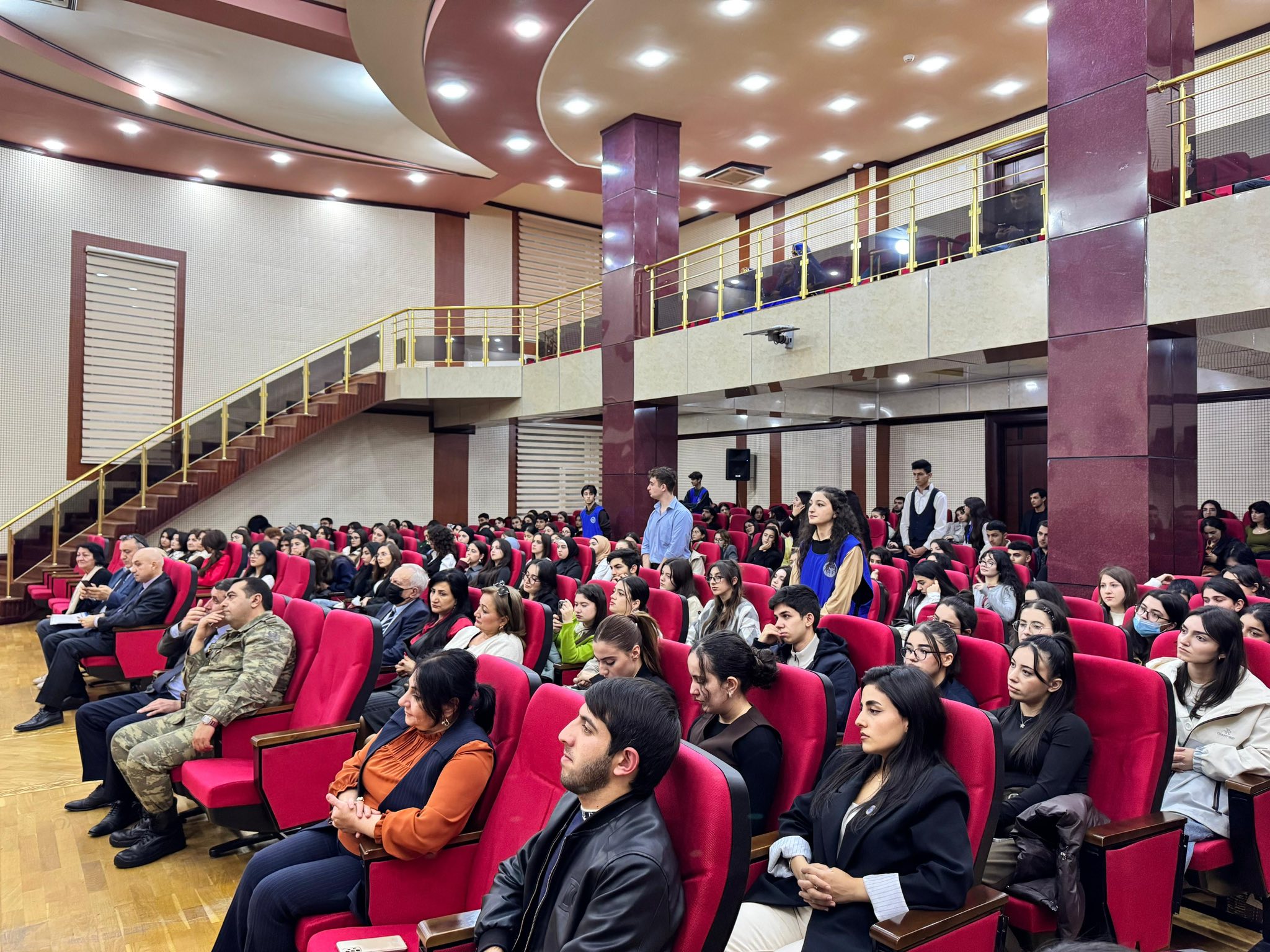 Tədbirdə fakültə rəhbərliyi, professor-müəllim heyəti, tələbələr, Vətən müharibəsi iştirakçıları iştirak ediblər. Əvvəlcə Dövlət himni səsləndirilib, torpaqlarımızın azadlığı uğrunda həlak olmuş şəhidlərimizin əziz xatirəsi bir dəqiqəlik sükutla yad edilib.