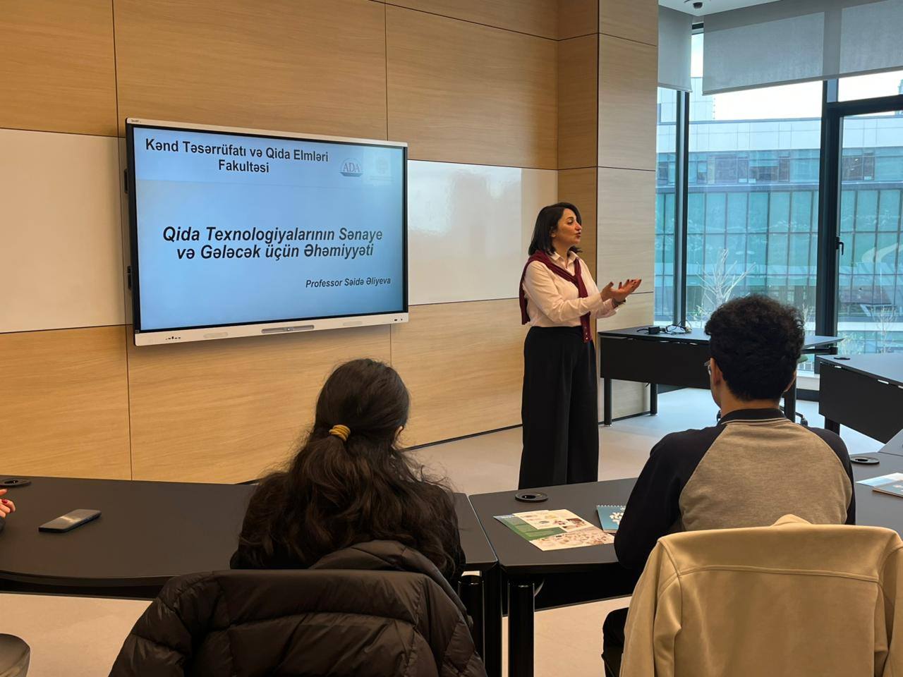 Şagirdlər kənd təsərrüfatı və qida siyasəti üzrə professor Səidə Əliyevanın dayanıqlı qida sistemləri, bu sahədə elmi yanaşmalar və gənclərin rolu haqqında çıxışını dinləyiblər. Ekskursiya zamanı SAFS laboratoriyaları da ilk dəfə olaraq ekoklub üzvlərinə təqdim olunub. Universitet mühitində təşkil edilən təqdimatlar və interaktiv müzakirələr şagirdlərin elmə, tədqiqata və gələcək ixtisas seçimlərinə marağını daha da artırıb.