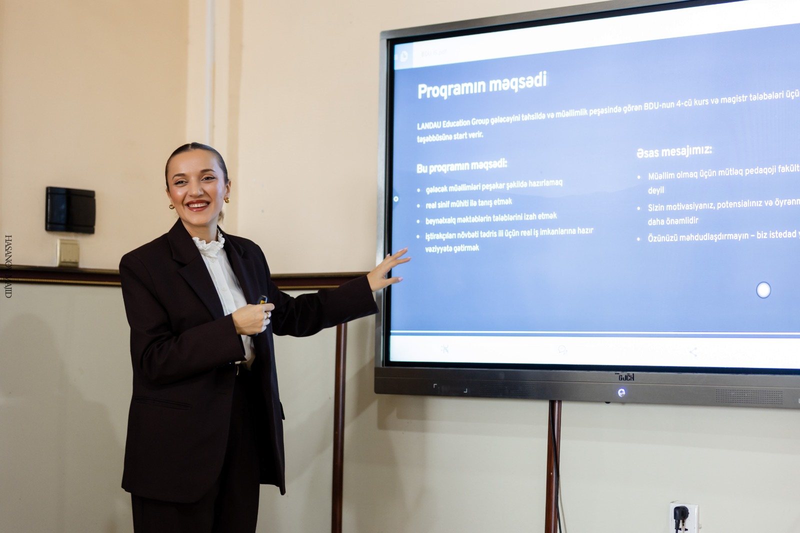 “LANDAU Academy”nin rəhbəri Ləman Bayramlı, qrup rəhbəri Aynur Allahverdiyeva tərəfindən keçirilən infosessiya zamanı “Gələcəyin müəllimləri” təqaüd proqramının məzmunu, strukturu və üstünlükləri barədə təqdimat edilib. Qeyd olunub ki, “LANDAU Academy” beynəlxalq standartlara uyğun müəllim hazırlığını təmin edən, praktiki məşğələləri, demo dərsləri və portfolio əsaslı qiymətləndirmə mexanizmlərini özündə birləşdirən kompleks ixtisaslaşma proqramı həyata keçirir. Proqramı uğurla başa vuran iştirakçılar beynəlxalq məktəblərdə mövcud vakansiyalara müraciət zamanı rəqabət üstünlüyü əldə edirlər. Bu təşəbbüs gələcək müəllimlərin peşəkar inkişafına dəstək göstərməklə yanaşı, onların real məktəb mühiti ilə tanış olmasına və əmək bazarında hazır kadr kimi formalaşmasına xidmət edir. Proqram çərçivəsində iştirakçılar üçün təqaüd imkanları yaradılır və mərhələli seçim prosesi tətbiq olunur.