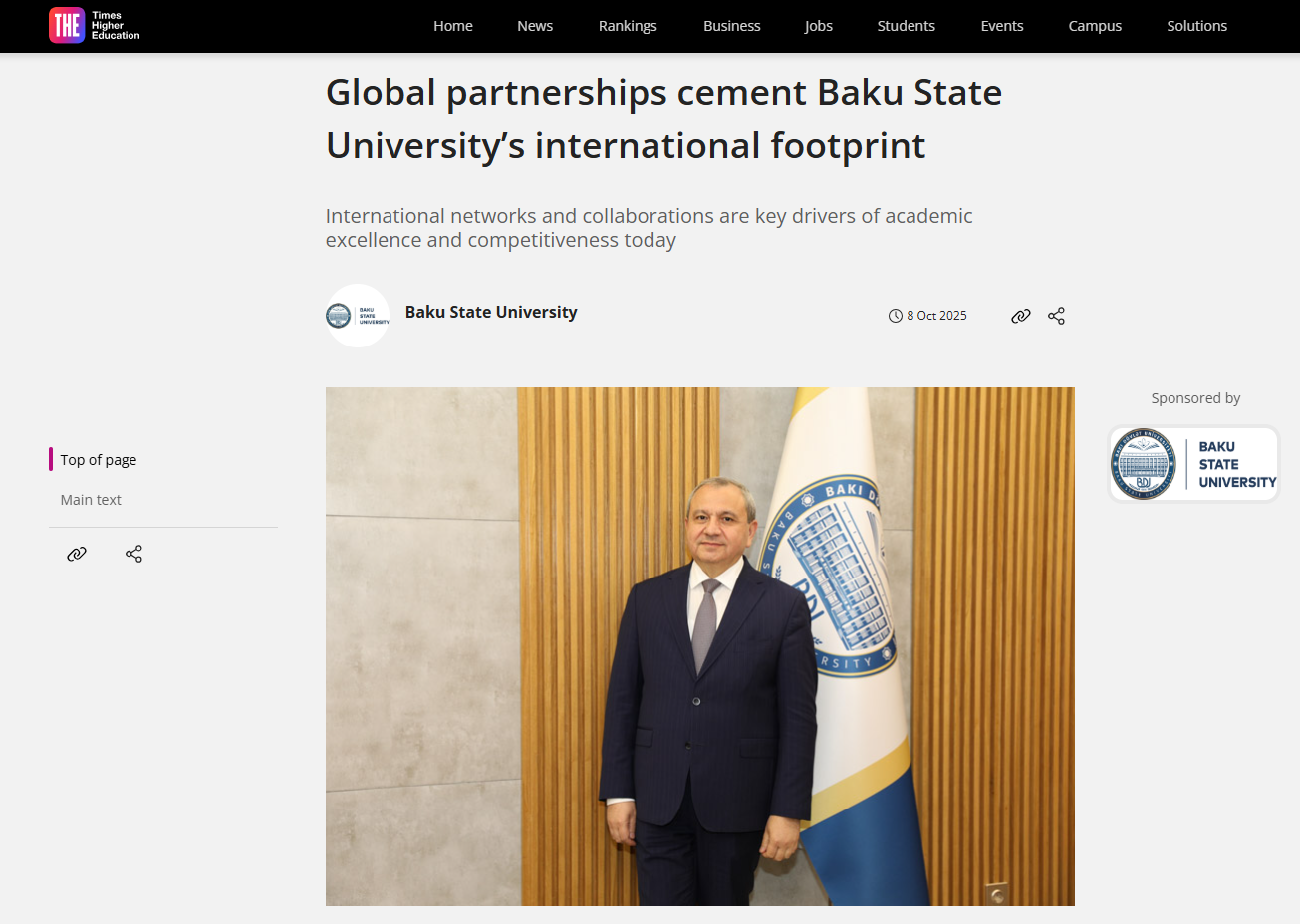 Müsahibə “Beynəlxalq tərəfdaşlıqlar Bakı Dövlət Universitetinin qlobal izini möhkəmləndirir” (“Global partnerships cement Baku State University’s international footprint”) adlı məqalə şəklində dərc olunub. Məqalədə BDU-nun beynəlxalq əlaqələrinin genişlənməsi, elmi potensialının güclənməsi və strateji tərəfdaşlıqlarının Universitetin qlobal rəqabət qabiliyyətini artırdığı vurğulanır.