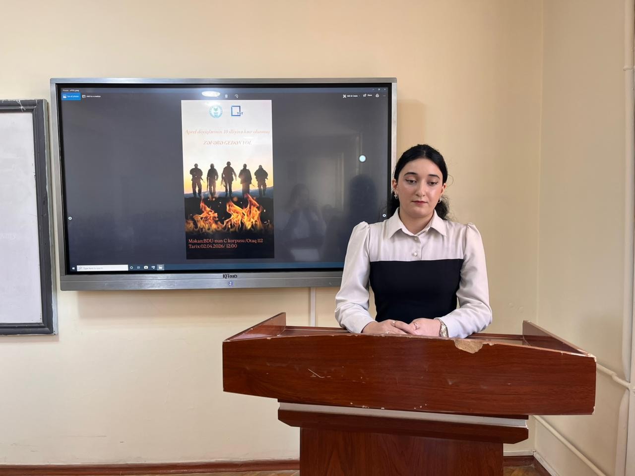 Sonda tələbələrin ifasında bədii kompozisiya və Aprel döyüşlərinə həsr olunmuş videoçarx nümayiş olunub.