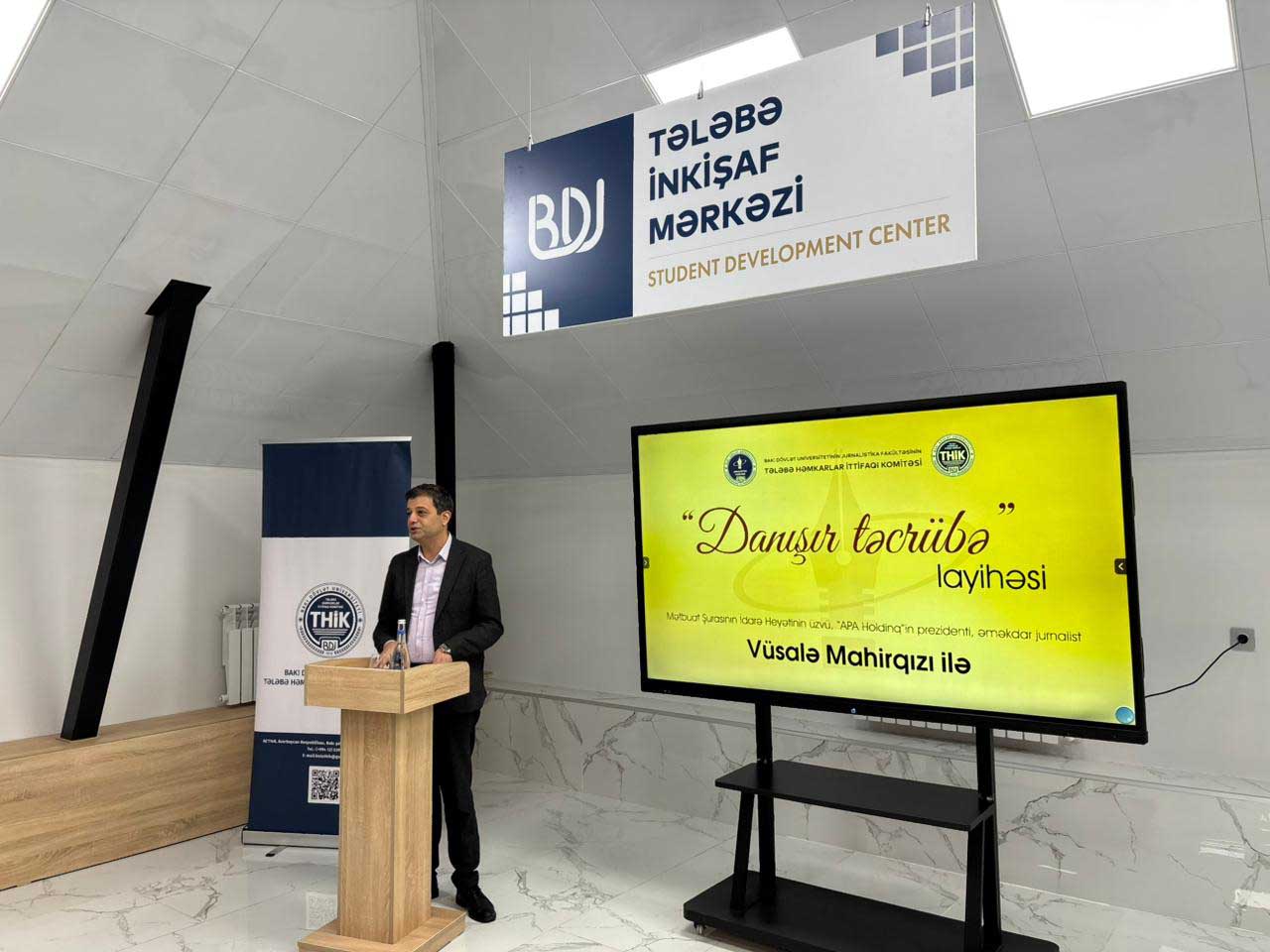 Vusala Mahirgyzy, President of APA Holdinq and member of the Press Council Board, was the latest guest of the “Experience Speaks” project organized by the Journalism Faculty Student Trade Union Committee at Baku State University (BSU).