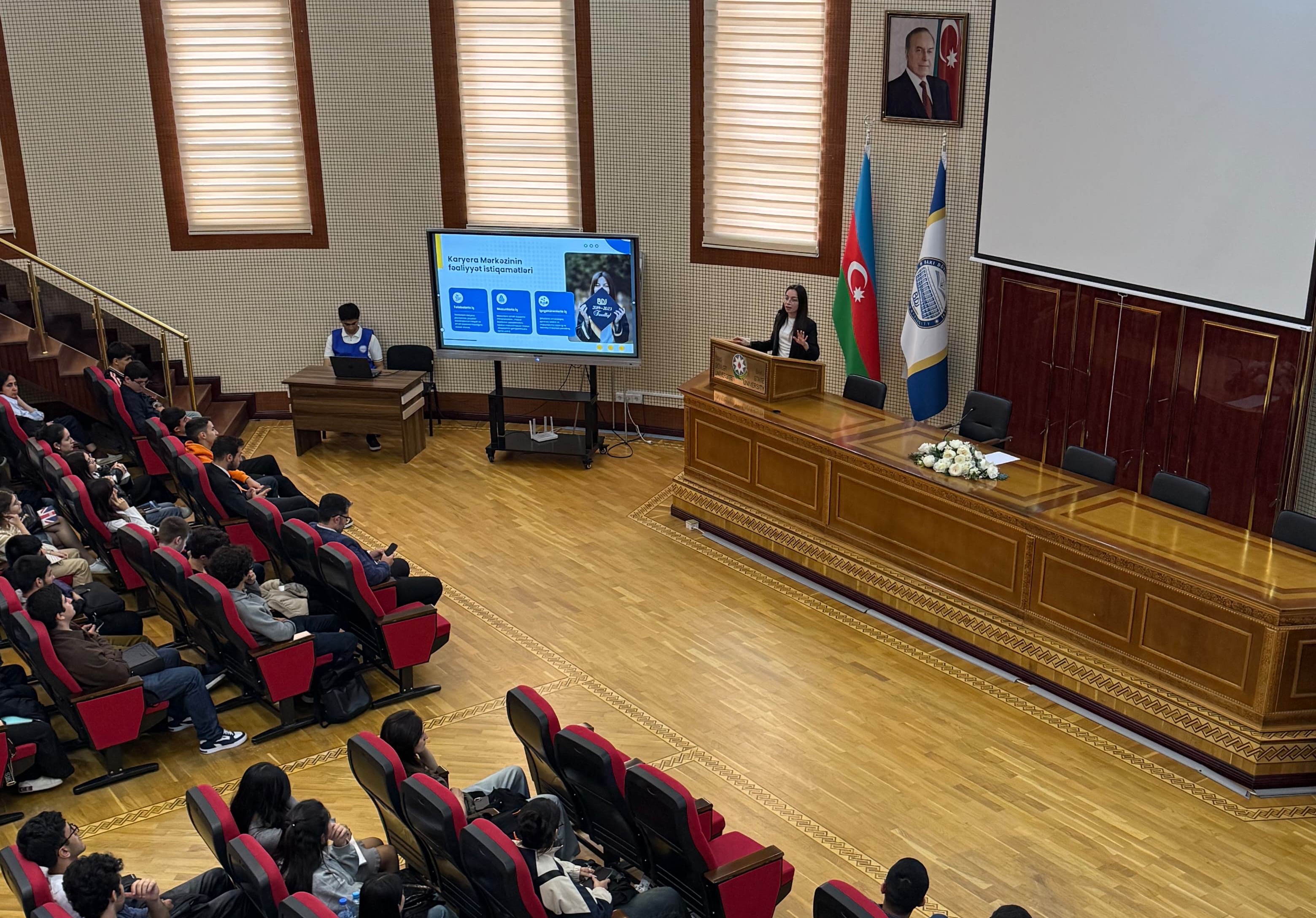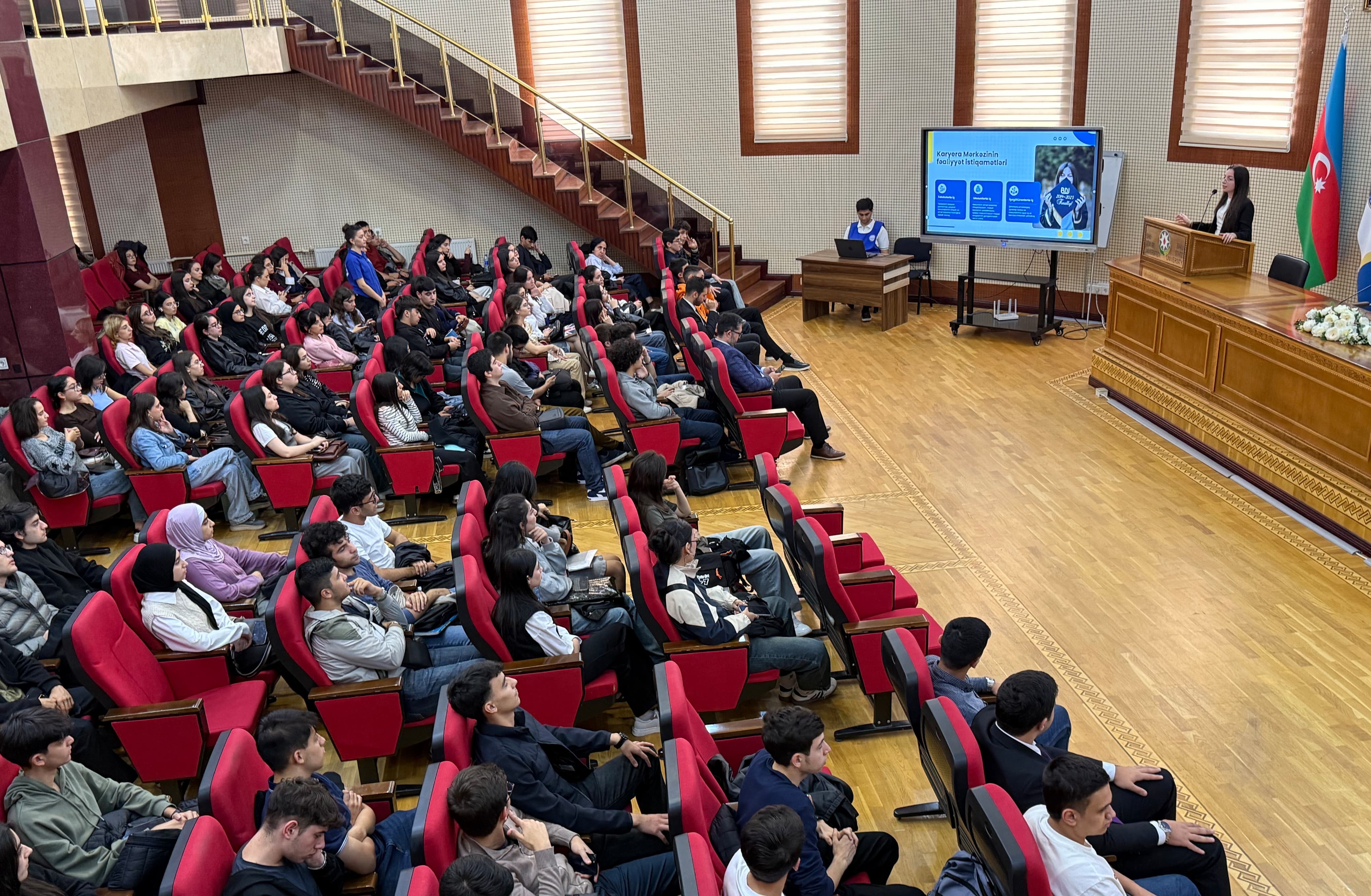 At the meeting held with students of the Faculty of Oriental Studies, representatives of the Career and Alumni Center, Ilkin Sharifov and Melekkhanim Gurbanova, emphasized that the Center’s main mission is to enhance students’ knowledge and skills and to prepare them in line with the demands of the labor market.