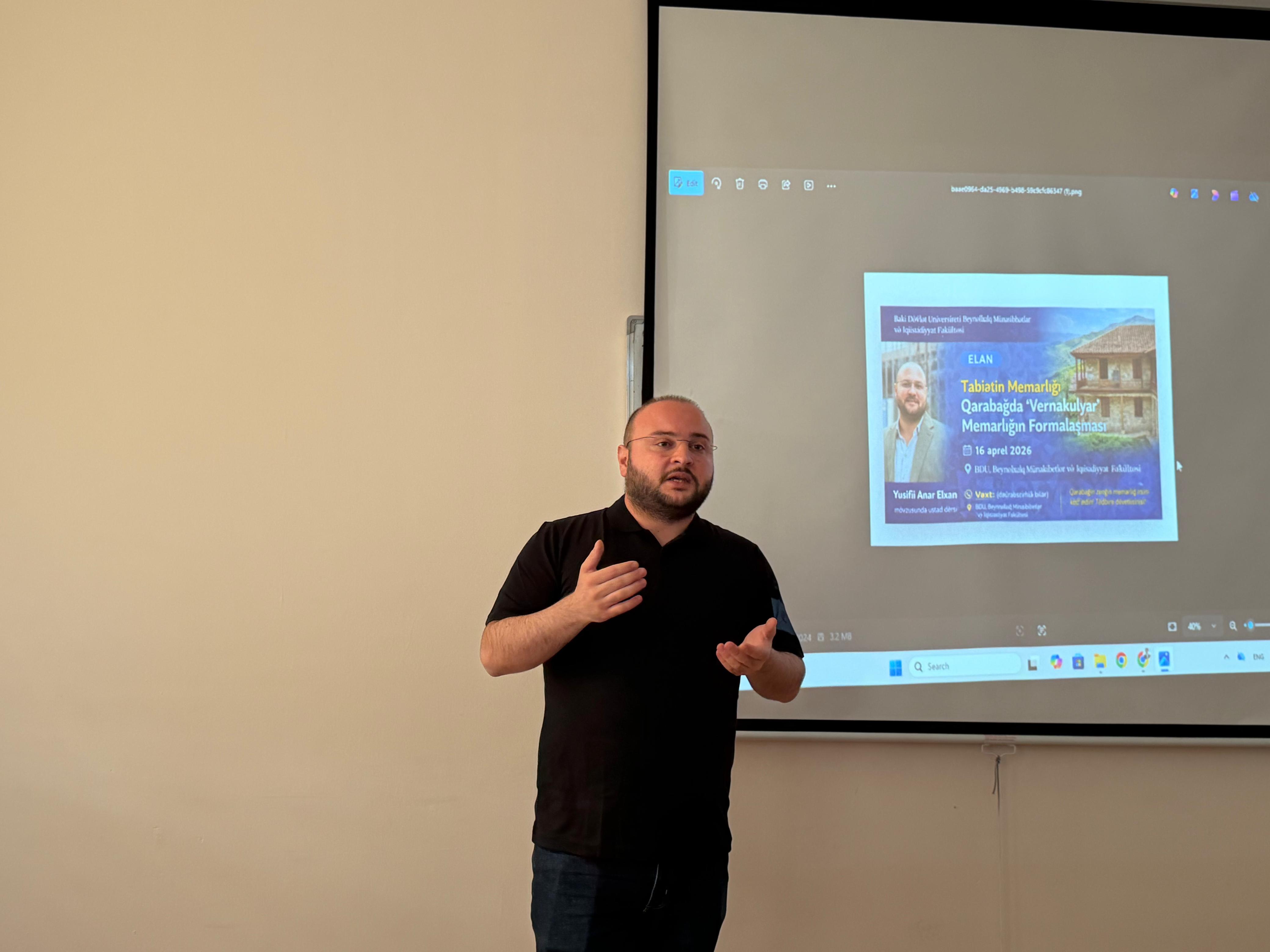 A master class titled “Architecture of Nature: Formation of Vernacular Architecture in Karabakh” was held at the Faculty of International Relations and Economics of Baku State University (BSU) as part of the “Year of Urban Development and Architecture.” The session was delivered by Anar Yusifli, a doctoral researcher at the Politecnico di Milano.