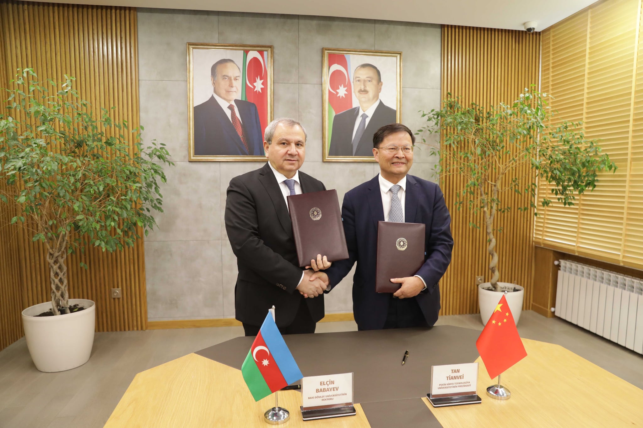 Документ подписали ректор БГУ Эльчин Бабаев и президент ПУХТ Тань Тяньвэй. На церемонии подписания также присутствовала посол Китайской Народной Республики Лу Мэй.