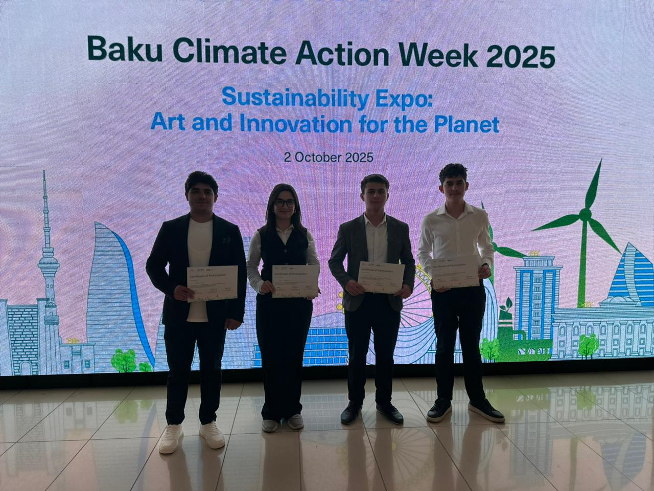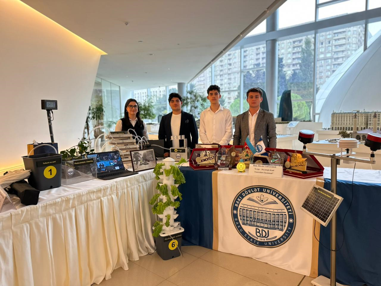 Бакинский государственный университет (БГУ) был представлен двумя проектами на мероприятии «Устойчивая выставка: искусство и инновации для планеты» в рамках «Бакинской недели борьбы с изменением климата». Один из них — проект «Irrigo» — устойчивая сельскохозяйственная экосистема», а другой — проект «Hyroponics».