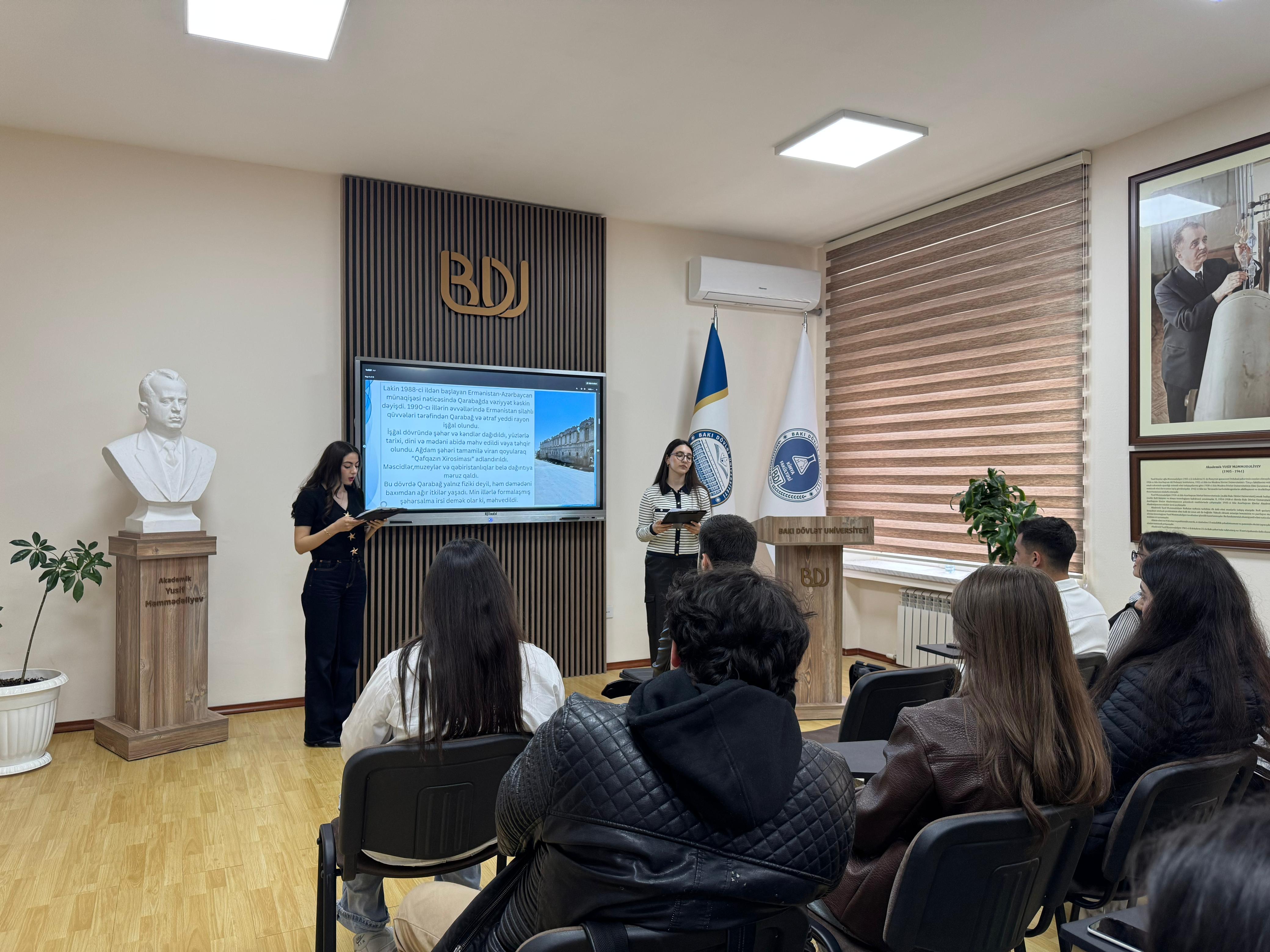 Заместитель декана химического факультета Талех Гахраманов подчеркнул, что Карабах является одним из стратегически важных регионов Азербайджана. Он отметил, что до оккупации градостроительство на этих территориях основывалось на национальных архитектурных традициях, но во время оккупации совершены серьезные разрушения и уничтожена инфраструктура.