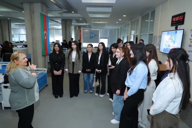 Студенты ознакомились с новостными службами и студиями АзТВ, Культура ТВ и Спорт ТВ. Заместитель директора новостной студии Рамила Исаева показала им подготовку новостей и различных программ для трансляции, их подачу и принципы работы на телевидении. Студенты также познакомились с центром оцифровки «Золотого фонда» АзТВ.
