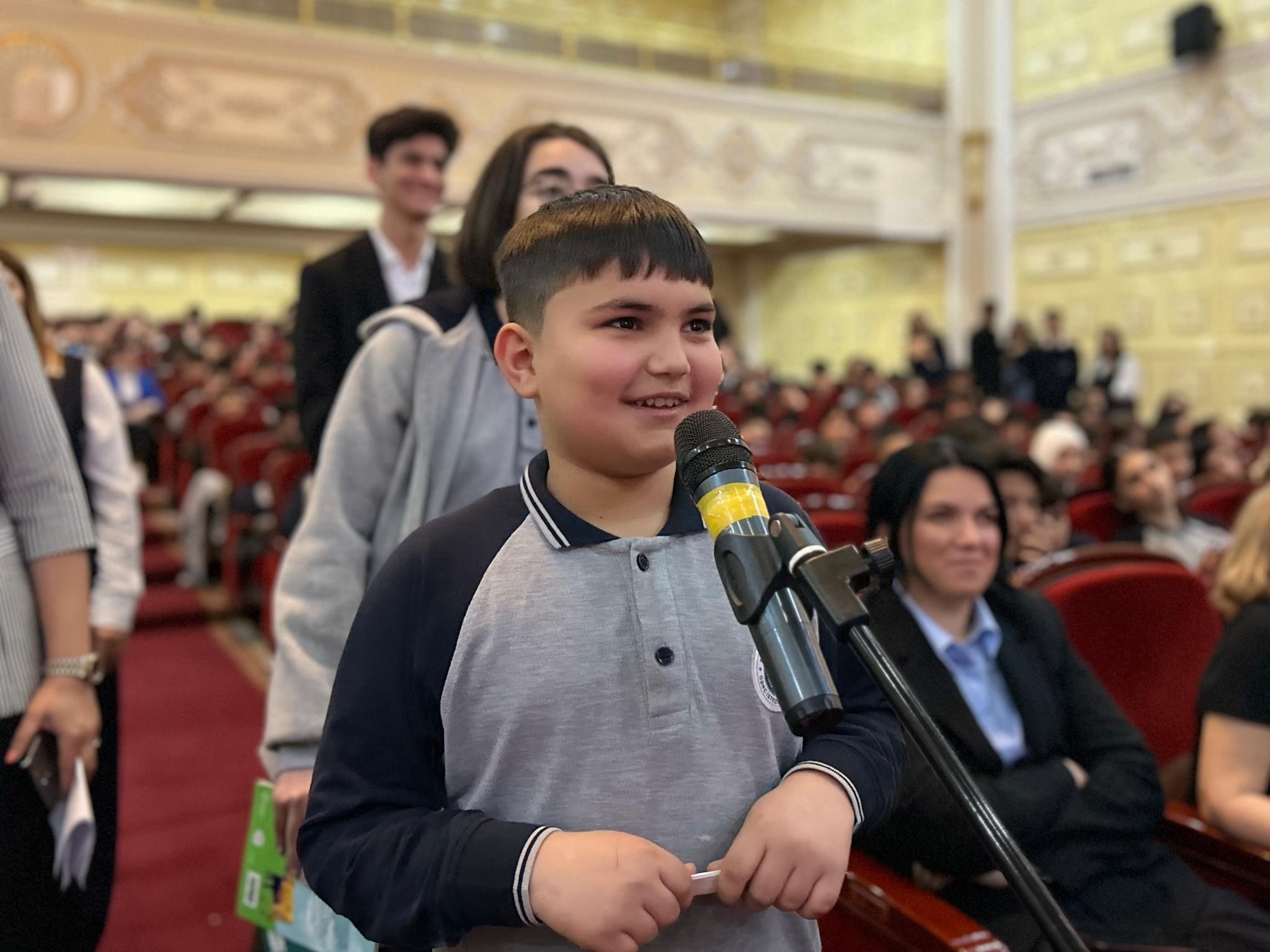 В продолжение встречи учащиеся продекламировали стихи Захида Халила и задали вопросы о его творчестве. Лицеистка Нурай Гамидова вручила писателю подготовленный ею подарок.