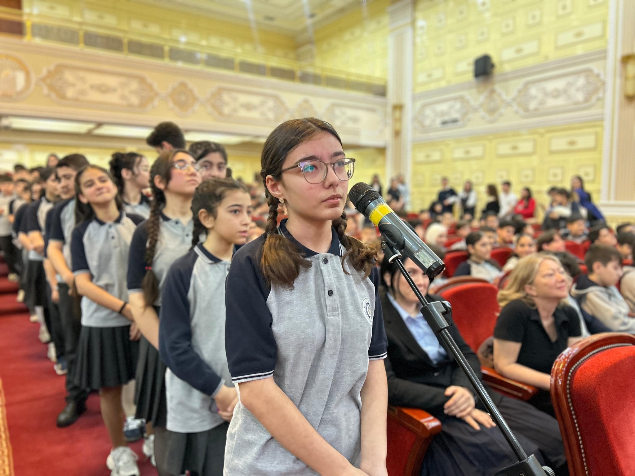 Затем слово было предоставлено профессору Захиду Халилу. Поэт отметил, что его интерес к литературе сформировался еще в детстве. Он дал лицеистам свое напутствие, прочитал отрывки из своих любимых стихотворений: «Чтение в школьные годы играет роль маяка для вашего будущего. Поэтому всегда старайтесь читать и развиваться».