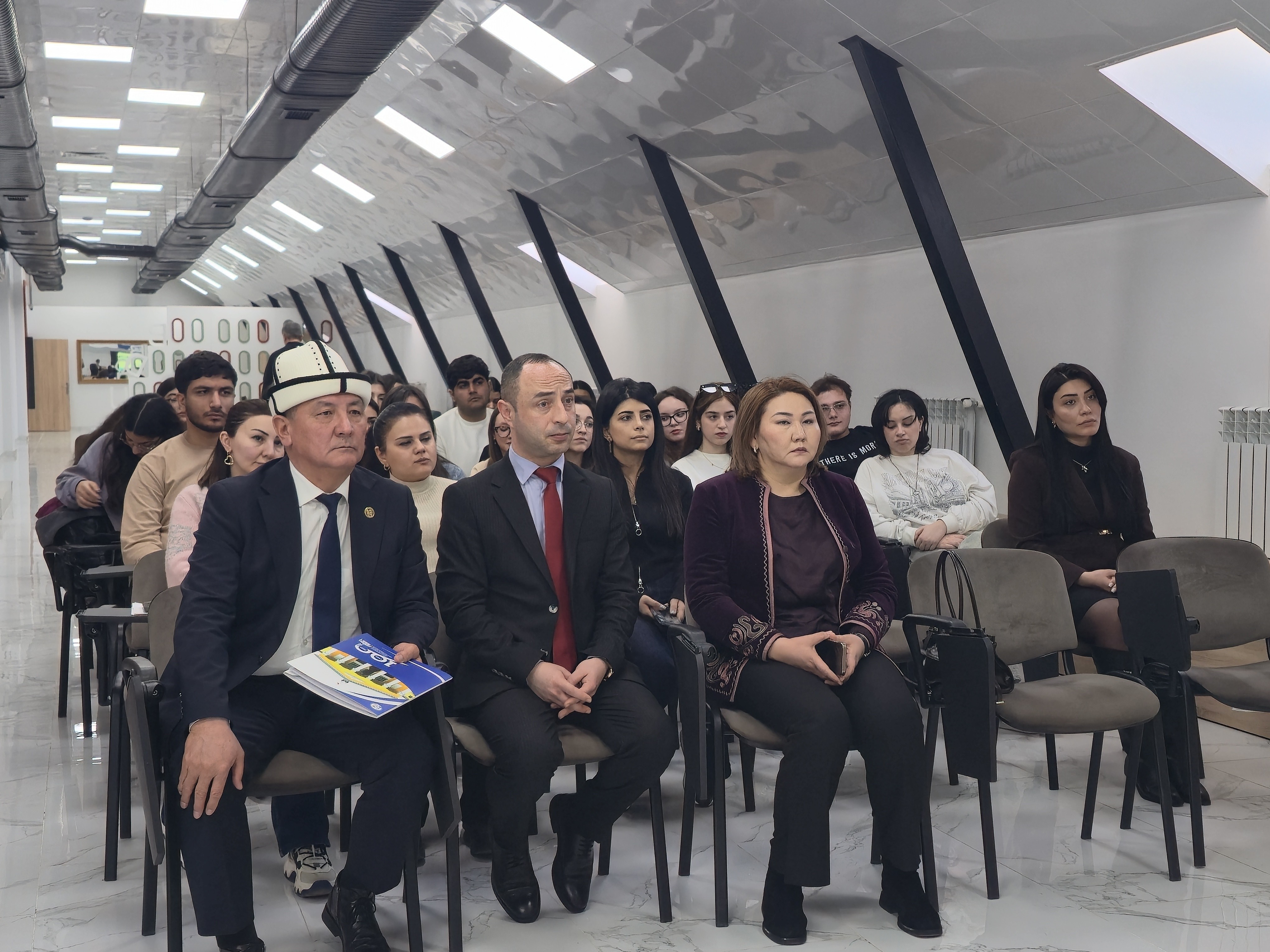 Ректор Кыргызского национального университета имени Жусупа Баласагына Догдурбек Чонтоев прочитал лекцию студентам Бакинского государственного университета (БГУ).
